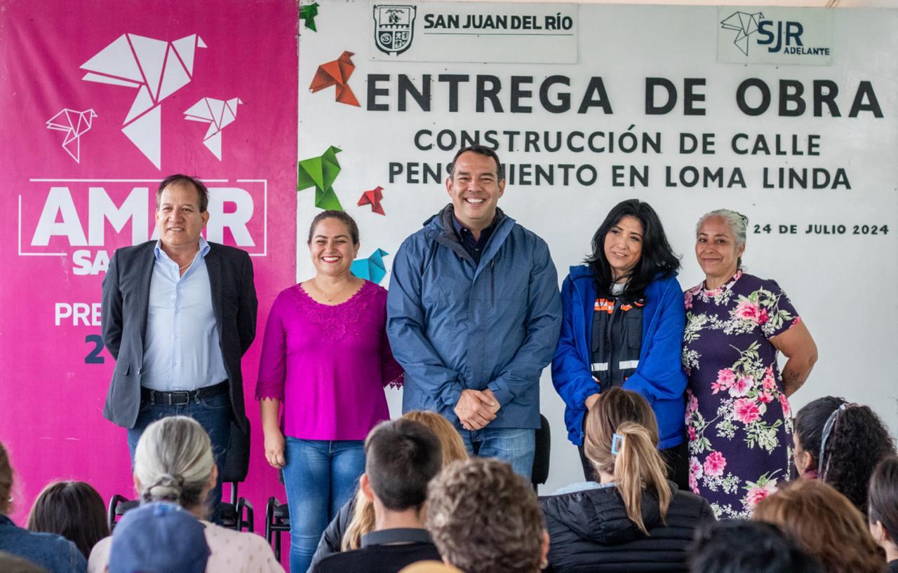 En beneficio de 200 habitantes y con una inversión de 3 millones 298 mil 943.77 pesos, el Gobierno Municipal de San Juan del Río, presidido por el alcalde Roberto Cabrera Valencia, entregó la construcción de la calle Pensamiento, en la localidad de Loma Linda, la cual tiene una longitud de 436 metros lineales y llevaba más de 15 años de no contar con una atención integral.