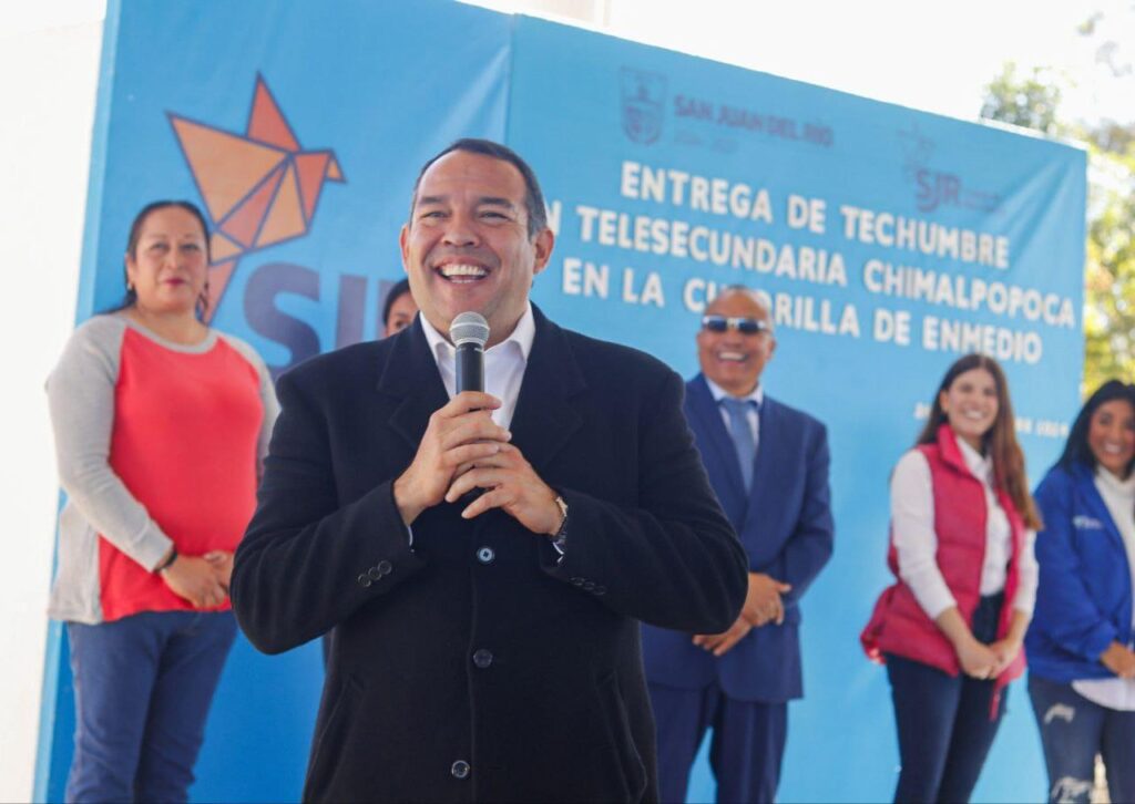 - El alcalde de San Juan del Río, Roberto Cabrera Valencia, entregó cuatro techumbres en Cuadrilla de En medio, El Chaparro y en la zona Centro, que representan casi 7 mdp de inversión.
