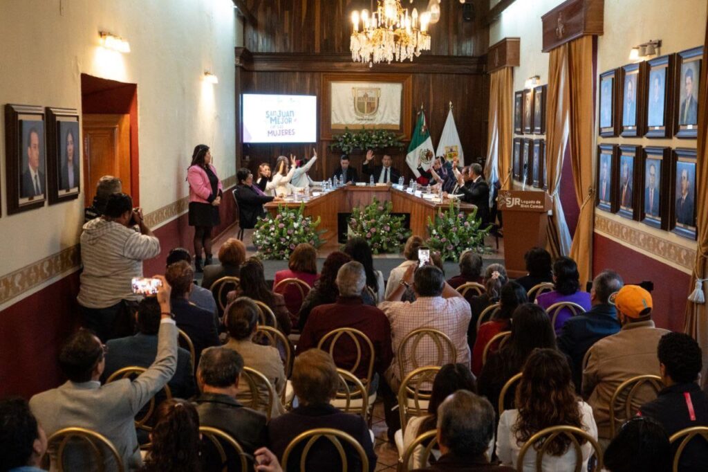 Durante la sesión, realizada en el Salón Presidentes de la Antigua Presidencia Municipal, ubicada en el Centro de San Juan del Río, el presidente municipal sanjuanense, Roberto Cabrera Valencia, afirmó que, con las mujeres, se construye una Mejor Sociedad, una Mejor Ciudad, un Mejor Gobierno y un Legado de Bien Común; por lo que, desde la Administración Municipal 2024-2027, continuarán las acciones para fortalecer las condiciones de igualdad, justicia, calidad de vida, oportunidades y derechos de las mujeres.