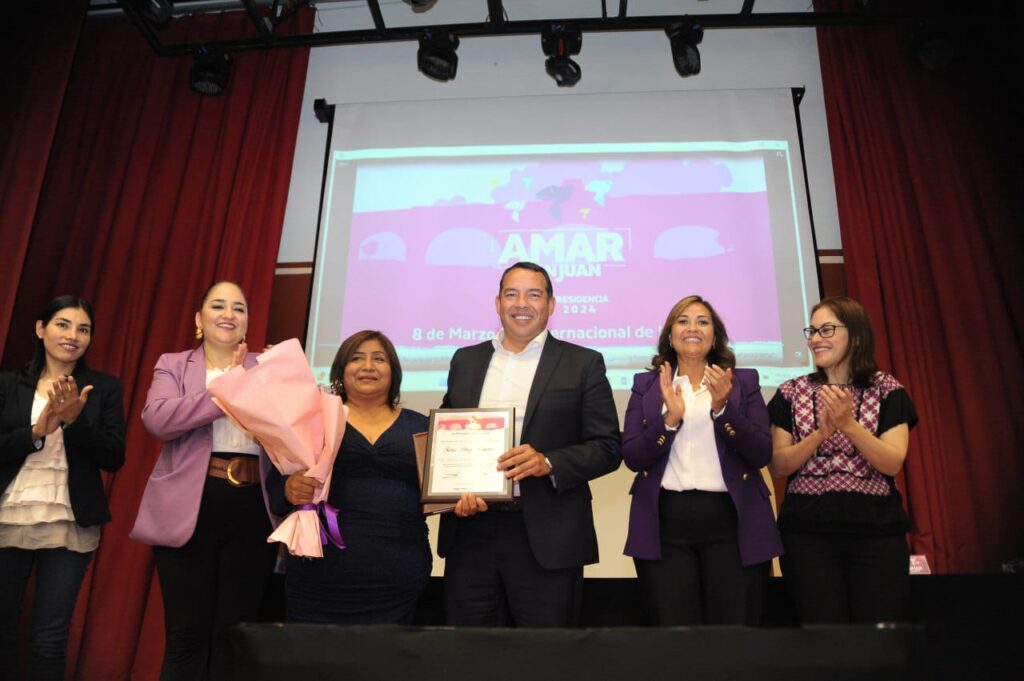 “Acalde Roberto Carlos Cabrera Valencia, en mi carácter de directora del Instituto Municipal de la Mujer, quiero reconocerle públicamente su visión y compromiso a disminuir la brecha de desigualdad entre hombres y mujeres, transversalizando las políticas públicas municipales como está de manifiesto en el Plan Municipal de Desarrollo de San Juan del Río 2021-2024, a favor de todas nosotras”, mencionó María Guadalupe Gómez.