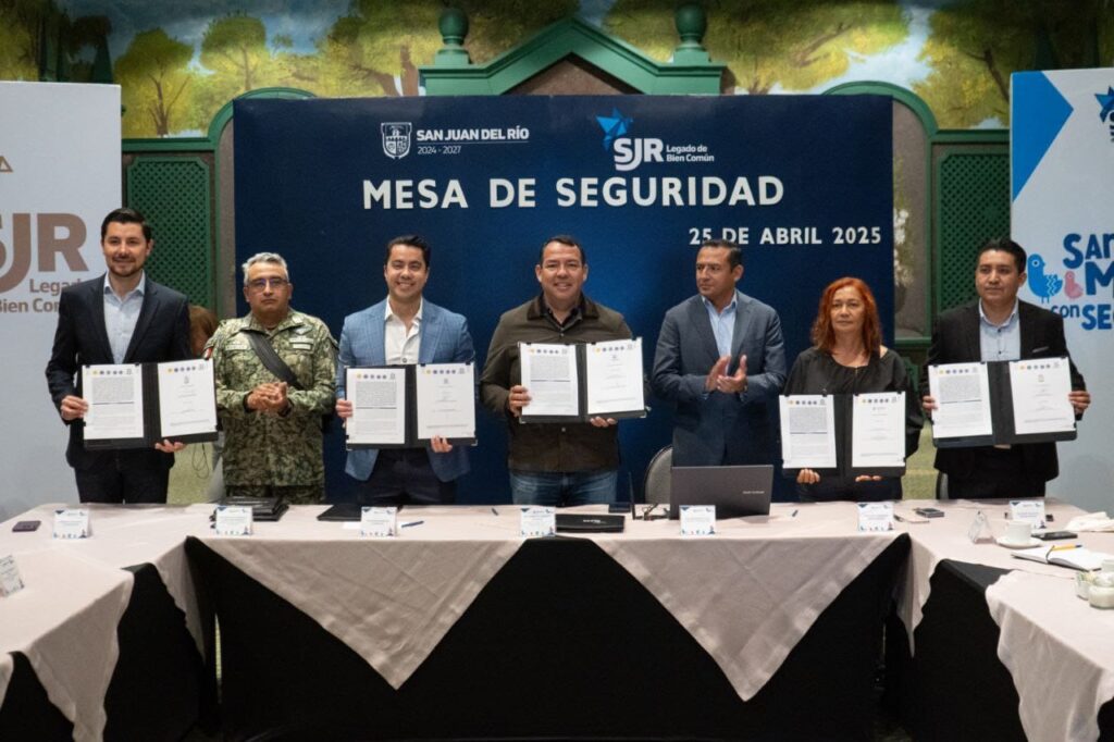 El convenio interinstitucional -signado por los presidentes municipales de Querétaro, Felipe Fernando Macías Olvera; de Tequisquiapan, Héctor Iván Magaña Rentería; de Ezequiel Montes, Iván Reséndiz Ramírez; la secretaria de Seguridad Pública de Pedro Escobedo, Julissa Zanella Anaya, en representación del alcalde de esta última demarcación, Juan Alberto Nava Cruz-, fue firmado durante la realización de la mesa itinerante de Coordinación para la Construcción de la Paz y la Seguridad de la Región 5, que en esta ocasión se llevó a cabo en San Juan del Río.