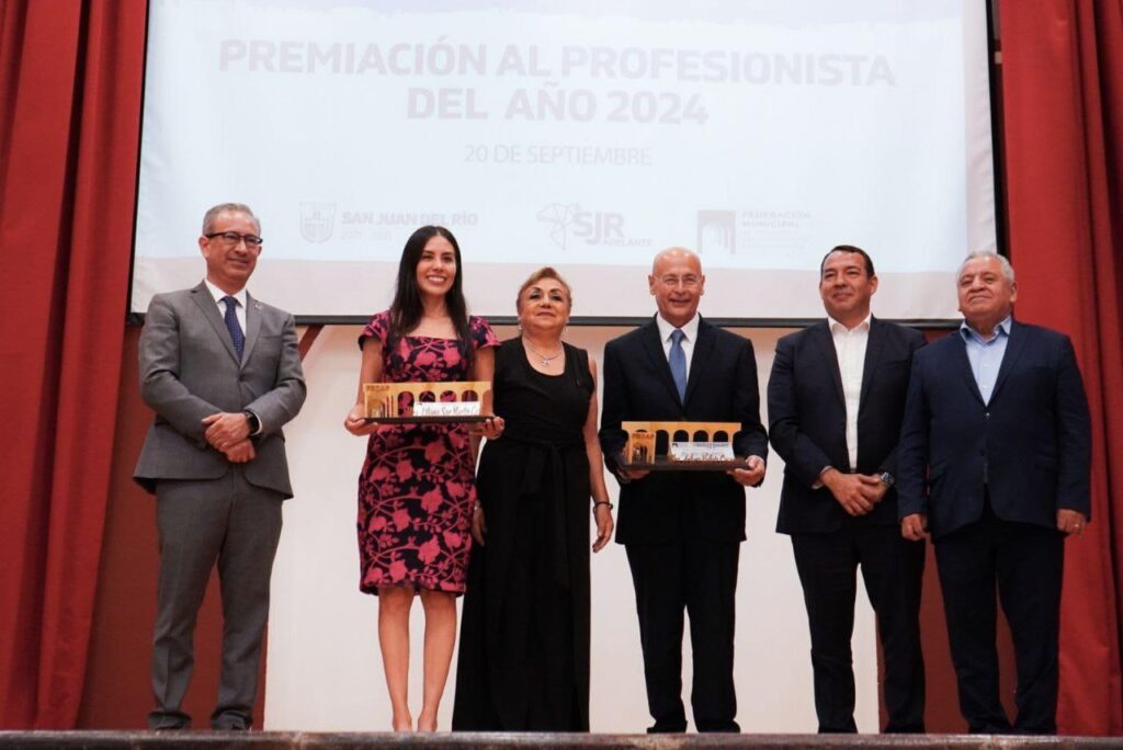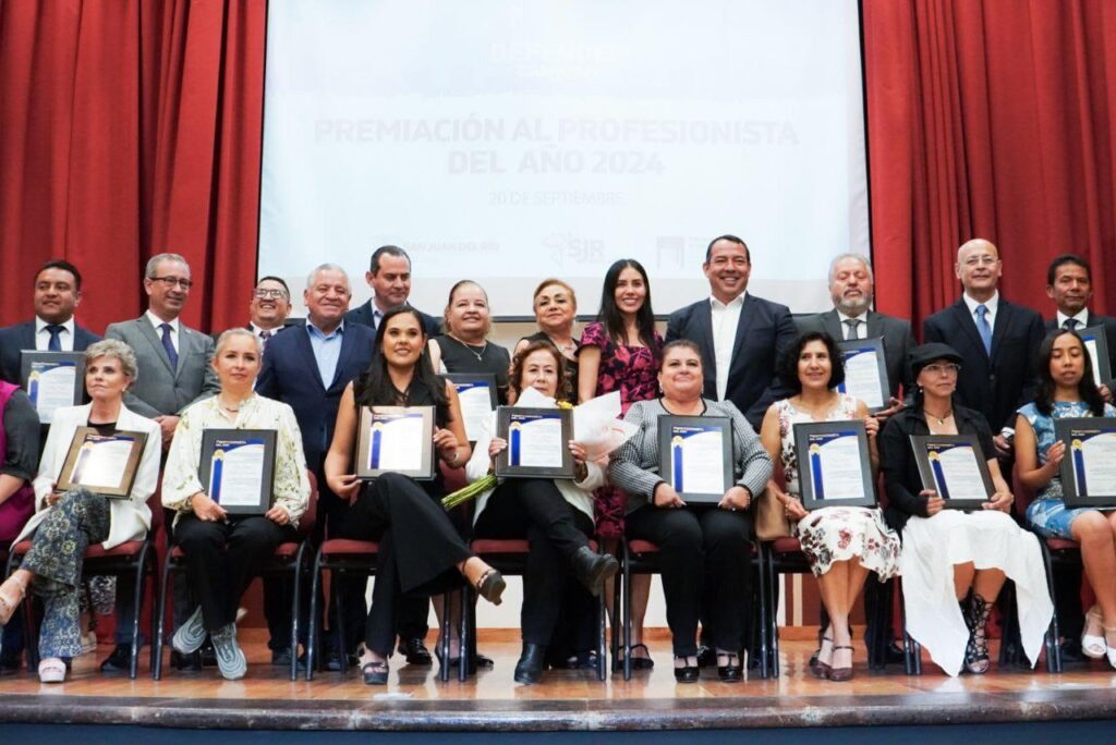 Con la finalidad de reconocer el desempeño sobresaliente y resaltar el actuar destacado en la actividad humana, la Federación Municipal de Colegios y Asociaciones de Profesionistas San Juan del Río (FECAP), presidida por Irma Brand Zaragoza, llevó a cabo la Premiación del Profesionista del Año 2024, evento al que asistió el presidente municipal de San Juan del Río, Roberto Cabrera Valencia, y en el que se entregaron 33 galardones.