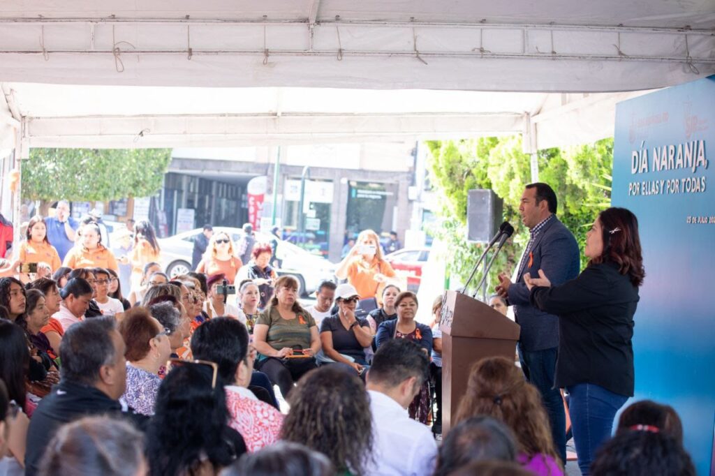 Con la finalidad de que las autoridades gubernamentales y la sociedad civil implementen medidas concretas para prevenir y eliminar la violencia contra las mujeres y las niñas, el Gobierno Municipal de San Juan del Río, presidido por el alcalde sanjuanense, Roberto Cabrera Valencia, puso en marcha el “Día Naranja. Por Ellas y Por Todas”, que incluye campañas de sensibilización, promoción de políticas de igualdad y protección para mujeres y niñas, así como la creación de entornos seguros y respetuosos.