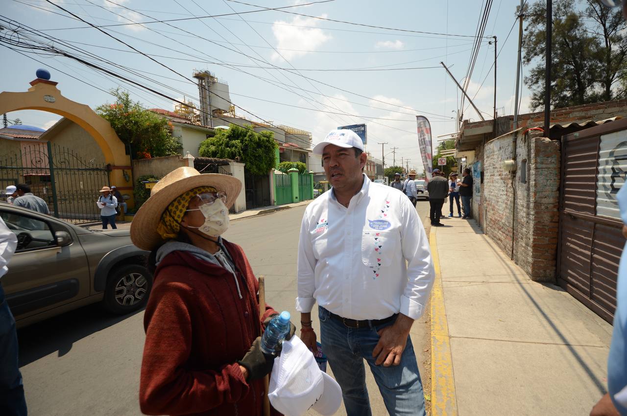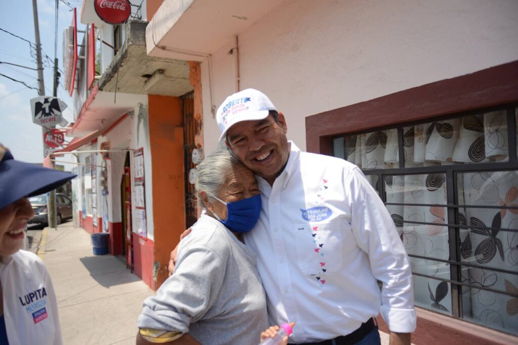 Durante el recorrido, que comenzó a la altura de la calle Las Flores y concluyó en el cruce con calle 18 de marzo, Roberto Cabrera expuso a la ciudadanía que lo recibió en establecimientos y en sus hogares sus propuestas de campaña, las cuales están orientadas a fortalecer la seguridad de las familias sanjuanenses, a aumentar el número de becas y llegar a 30 mil e impulsar a las mujeres con créditos, capacitación y estancias infantiles, entre otras.