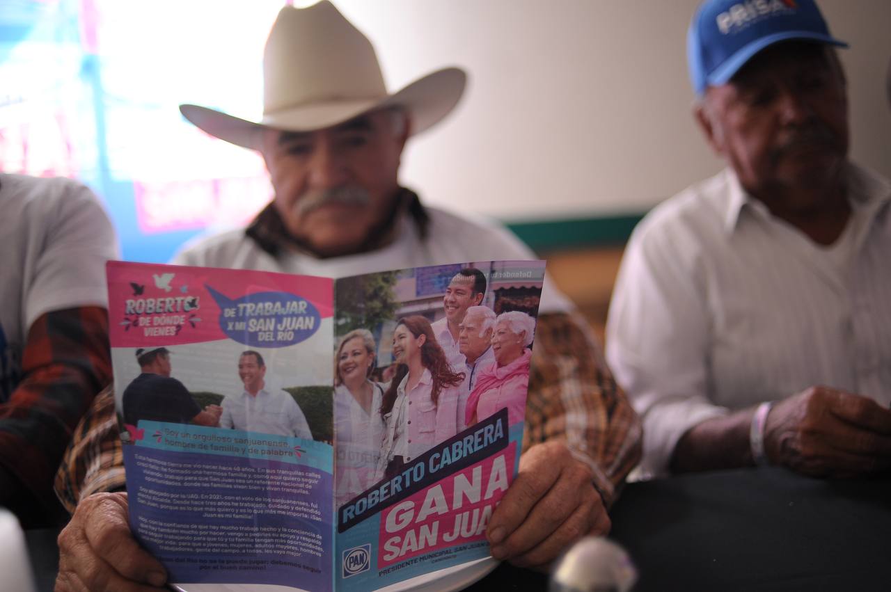 El candidato del PAN a la Presidencia Municipal de San Juan del Río pidió a las y los presentes que, el próximo 2 de junio, impulsen su proyecto para que gane el campo sanjuanense. En respuesta, la Unión de Ejidos manifestó su apoyo al candidato, toda vez que, mencionaron, Roberto Cabrera ha impulsado al sector agropecuario de la demarcación y ha mantenido hacer acercamiento con las y los integrantes de este.