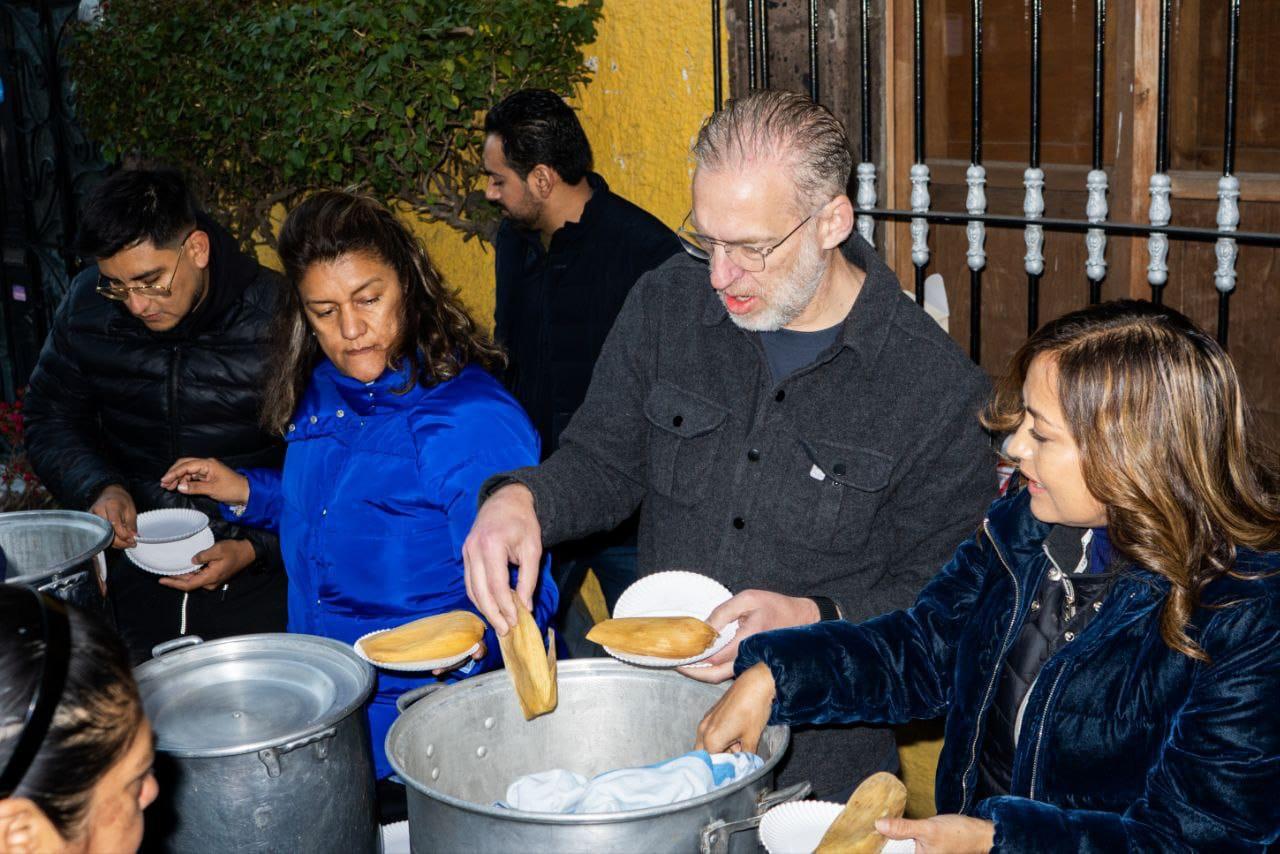 Desde muy temprana hora, este domingo 2 de febrero el presidente municipal de San Juan del Río, Roberto Cabrera Valencia, se reunió con integrantes de la Unión de Voceadores Mauro Orozco Leal y de la Asociación de Voceadores Sanjuanenses A.C., con quienes compartió tamales y atole con motivo del Día de la Candelaria, luego de haberse reunido con este gremio el Día de Reyes, evento en el que estuvo presente el secretario de Desarrollo Sustentable, Marco Antonio Del Prete Tercero.