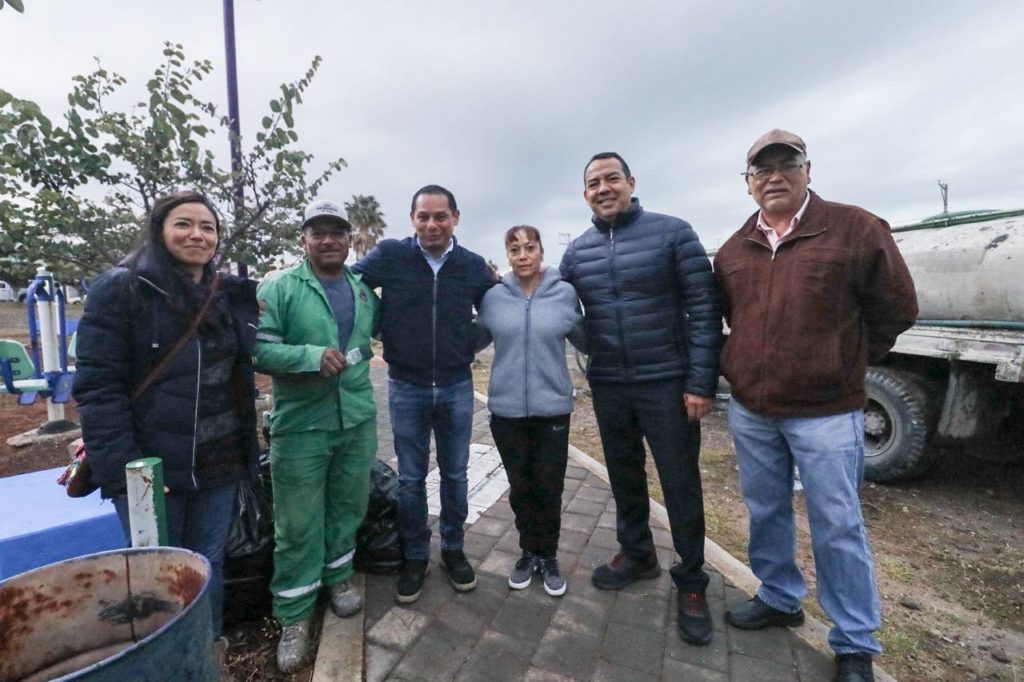 El presidente municipal de San Juan del Río, Roberto Cabrera Valencia, en equipo con el secretario de Servicios Públicos Municipales, Ernesto Mora Rico, y la presidenta de colonos, Claudia Paz Ruiz, realizó un recorrido de supervisión de los trabajos que esta dependencia llevó a cabo en parque Las Águilas Tercera Sección.