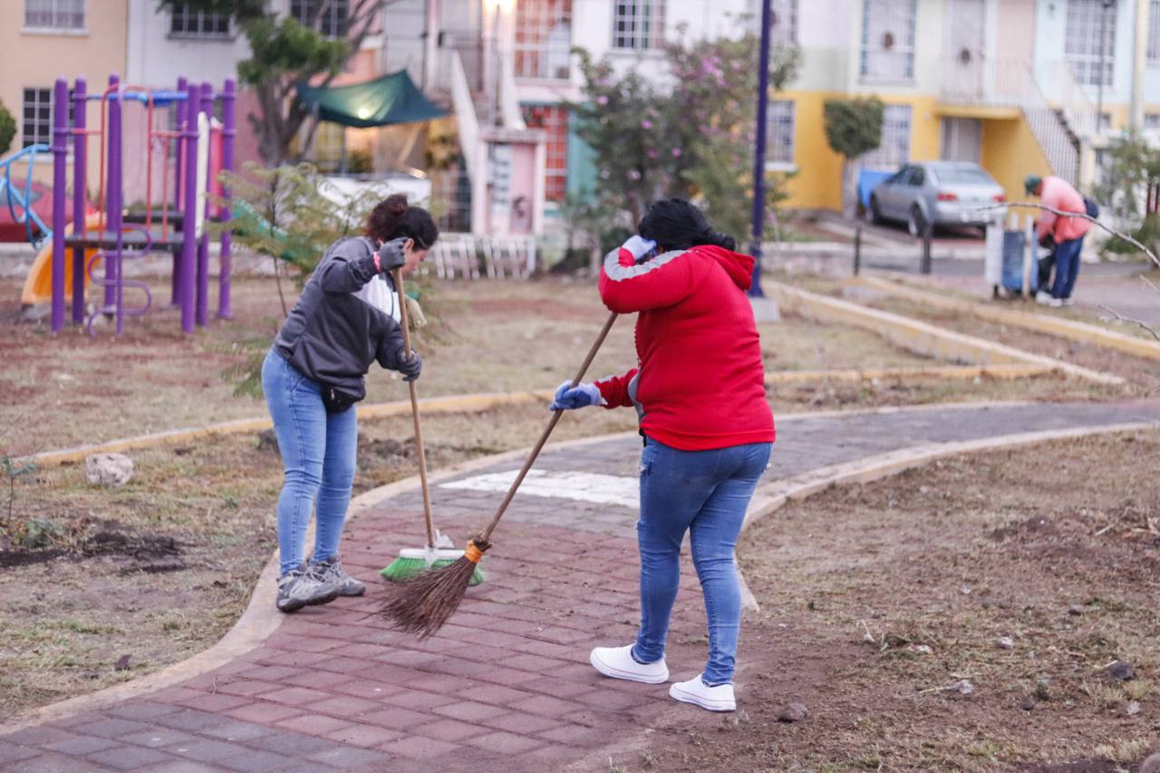 En este espacio, el personal de Servicios Públicos Municipales realizó acciones de deshierbe, bacheo y barrido fino en esta área, limpieza de buzones de basura, pintura en estructuras metálicas, de concreto y retiro de escombro, así como el cambio de 10 lámparas que se encontraban fundidas.