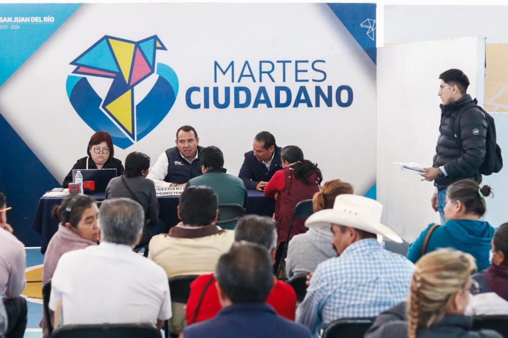 En el encuentro -el quinto llevado a cabo en horario vespertino y donde se atendieron alrededor de 220 solicitudes de las y los sanjuanenses-, Roberto Cabrera y el Gabinete Municipal escucharon puntualmente a la ciudadanía, con el propósito de mantener un contacto directo con los habitantes para ofrecerles diferentes trámites y alternativas a sus planteamientos, pues la premisa fundamental de este ejercicio ciudadano itinerante es “Escuchar más y atender mejor para solucionar”.