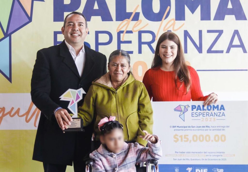 Con motivo del Día Internacional de las Personas con Discapacidad y a manera de reconocimiento al desarrollo de la sociedad sanjuanense, la presidenta del Sistema Municipal para el Desarrollo Integral de la Familia (DIF), Georgina Sánchez Barrios, y el presidente municipal de San Juan del Río, Roberto Cabrera Valencia, entregaron la presea Paloma de la Esperanza.