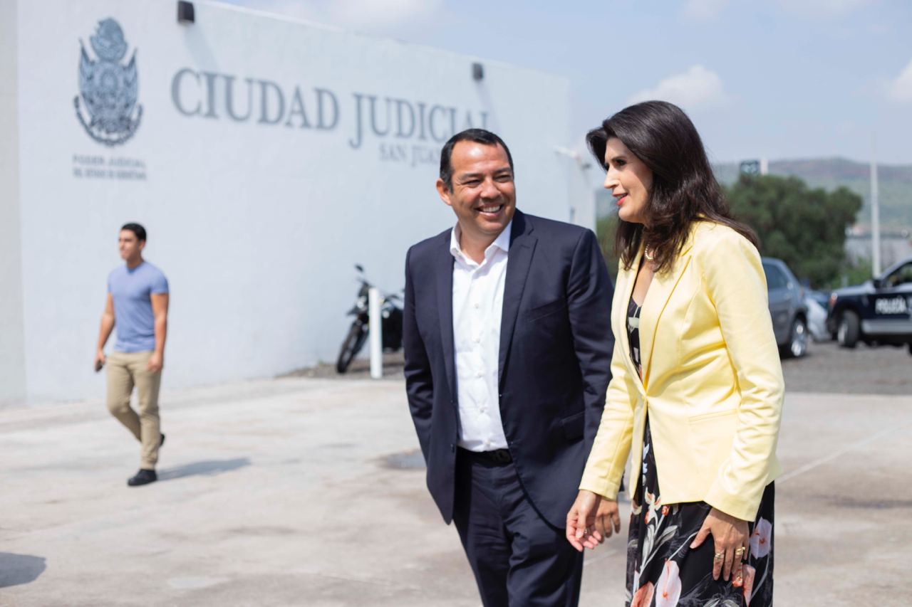 Para dar certeza jurídica sobre la propiedad del predio donde se ubica la Ciudad Judicial de San Juan del Río, el presidente municipal sanjuanense, Roberto Cabrera Valencia, y la magistrada presidenta del Poder Judicial del Estado de Querétaro, Mariela Ponce Villa, firmaron este viernes las escrituras de donación del terreno donde se asientan las instalaciones.