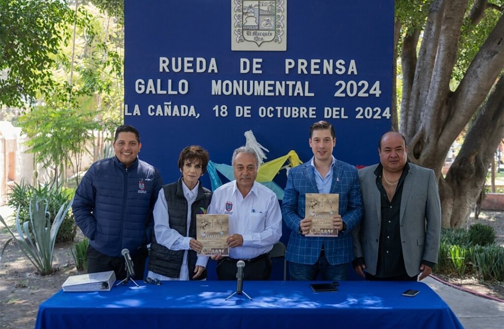 En la rueda de prensa estuvo presente la directora general del Patronato de las Fiestas del Estado de Querétaro, Gloria Eugenia García Alcocer; y el organizador del gallo monumental, José Manuel Morales González.