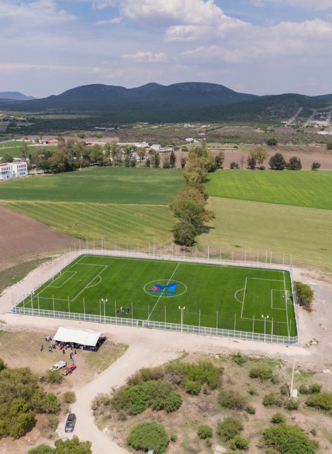 Esta primera etapa contempla la construcción de 143 metros lineales de guarniciones, la instalación de 7 mil 235 metros cuadrados de pasto sintético, 348 metros lineales de malla ciclónica, así como la colocación de dos porterías con red. Además, se llevó a cabo la instalación de 11 postes con 22 luminarias tipo LED, lo que permite brindar mayor seguridad y funcionalidad al espacio.