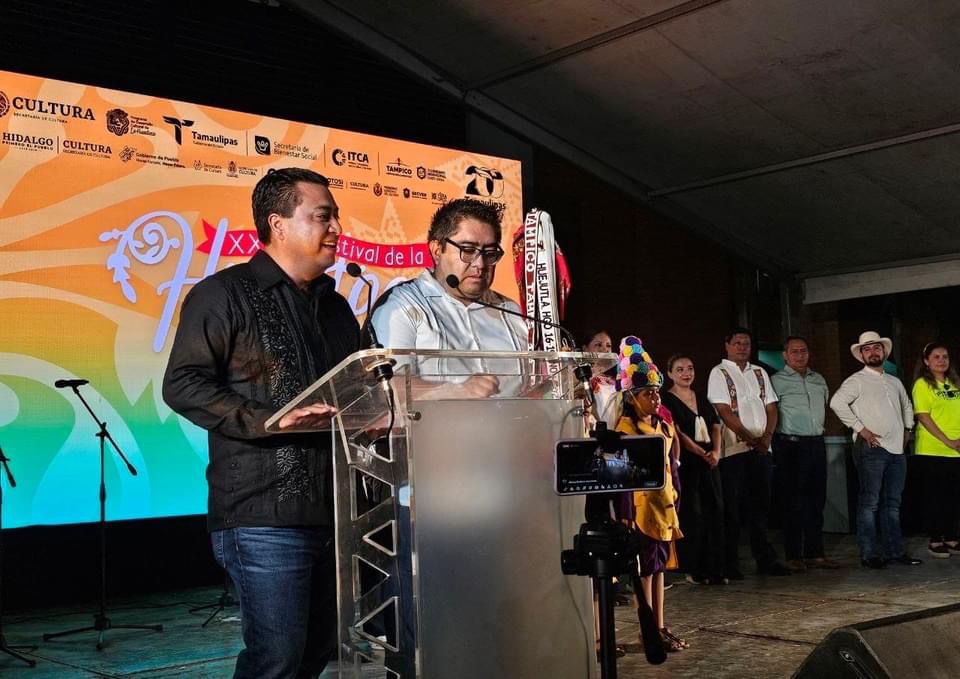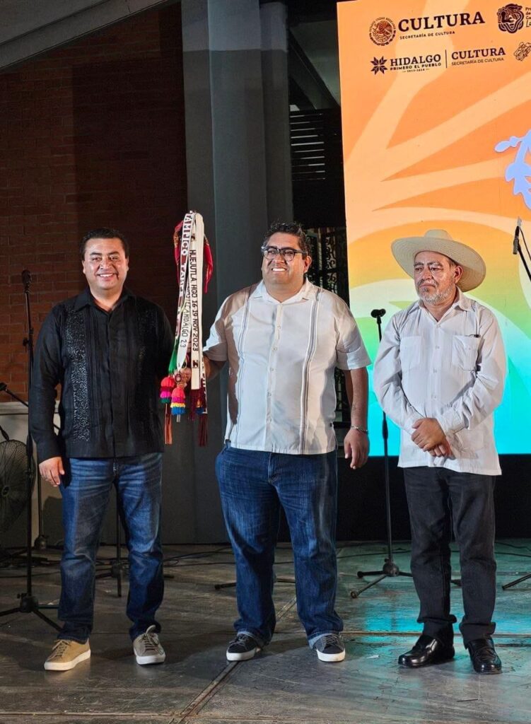 El Presidente electo de Jalpan de Serra Rubén Hernández junto al Lic. Gustavo Adolfo Sánchez Rivera, Director de Difusión y Patrimonio Cultural de la Secretaría de Cultura del Estado de Querétaro, recibieron el bastón de mando para ser sede del Festival de las Huastecas en su edición 28, que se llevará a cabo el próximo año.