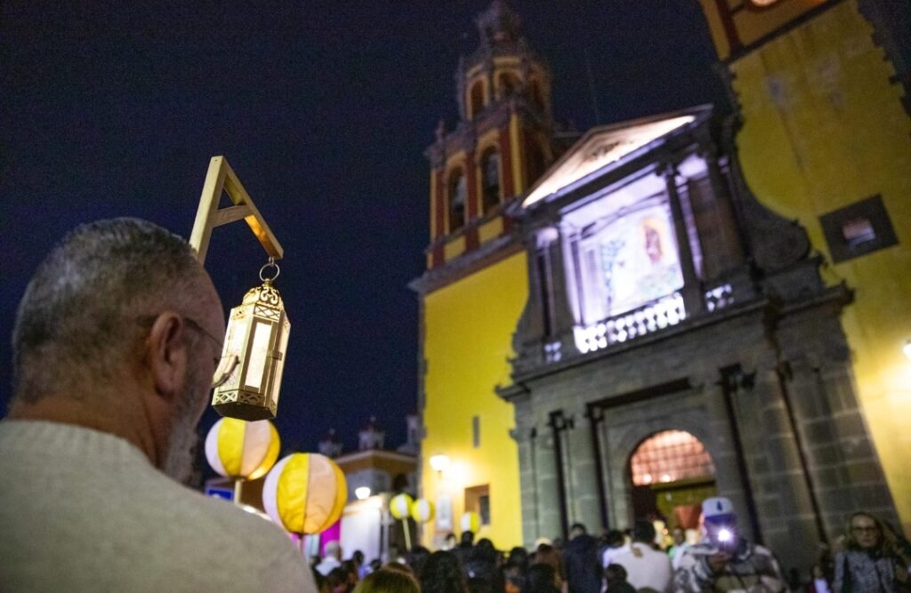 - El avance de las y los peregrinos iluminó avenida Juárez, calle Hidalgo y la zona de la Plaza Independencia con sus farolitos.