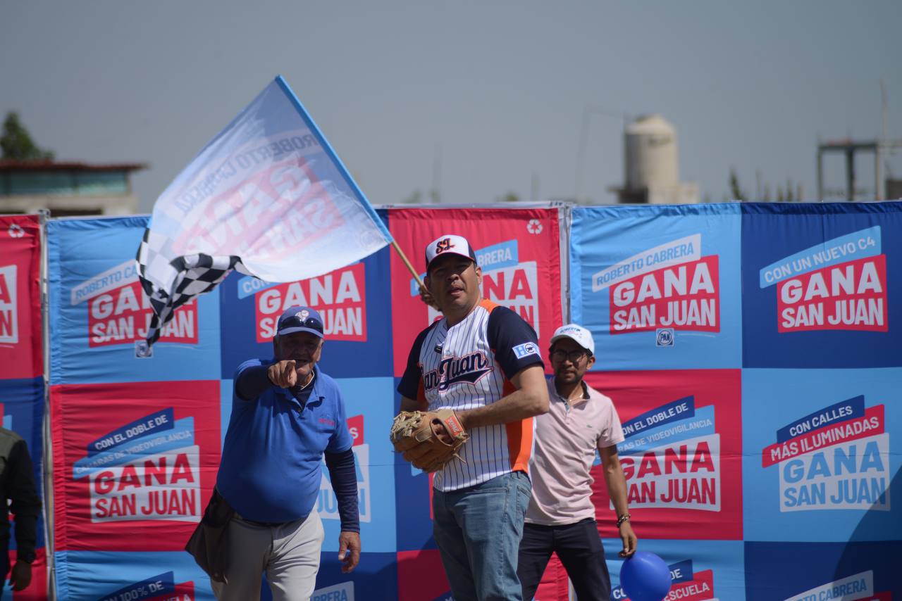 Al dar inicio el arranque de la temporada de beisbol de la Liga de San Juan, el candidato del Partido Acción Nacional a la Presidencia Municipal de San Juan del Río, Roberto Cabrera Valencia, hizo el primer lanzamiento de la pelota y se comprometió a rehabilitar las instalaciones del estadio.