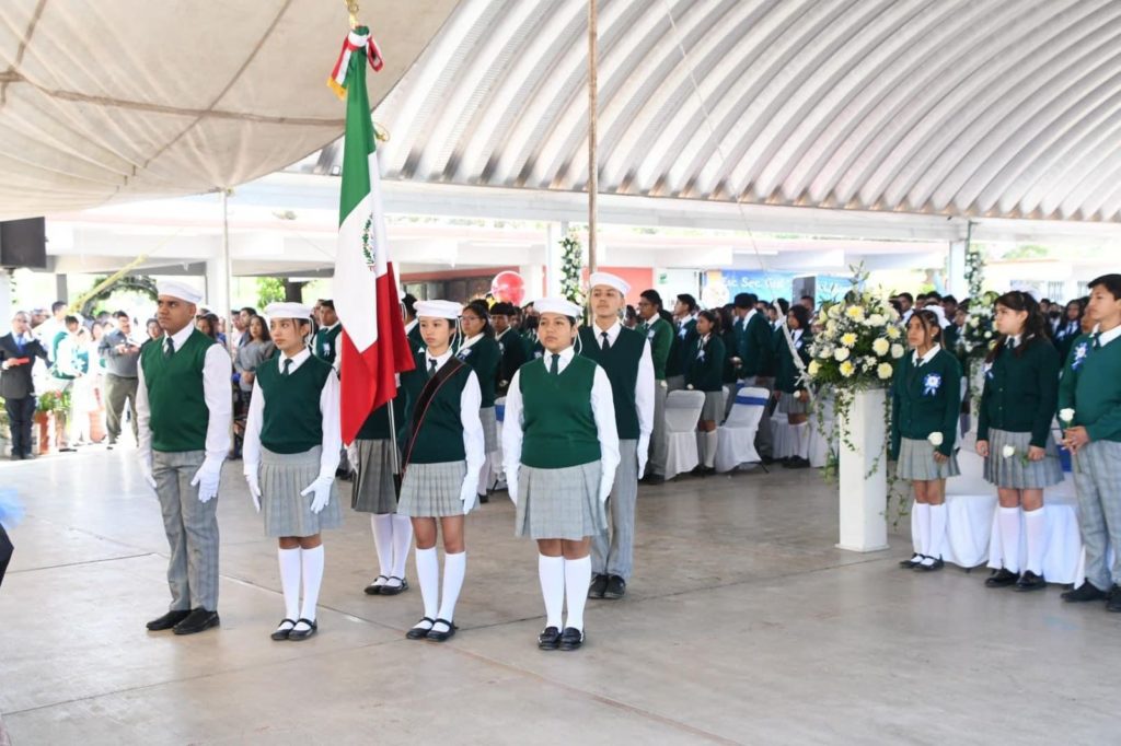 En compañía de autoridades municipales y directivas, teniendo como invitada de honor y madrina de generación a la Alcaldesa, Lupita Pérez Montes, los 347 alumnos de los 10 grupos que conforman el turno matutino y vespertino, recibieron la constancia de término de estudios en dicha institución.