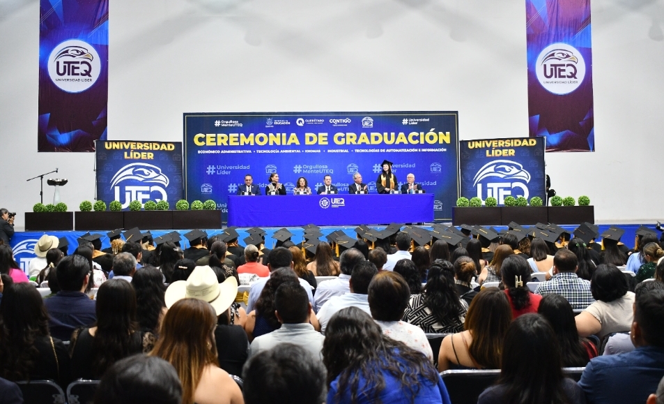 El rector de la Universidad Tecnológica de Querétaro (UTEQ), Luis Fernando Pantoja Amaro, encabezó la ceremonia de graduación de más de dos mil 340 estudiantes de las divisiones académicas. Destacó que los egresados están preparados para enfrentar los retos de un mundo en constante cambio, por lo que agradeció a docentes y familiares su respaldo en el logro de esta meta.