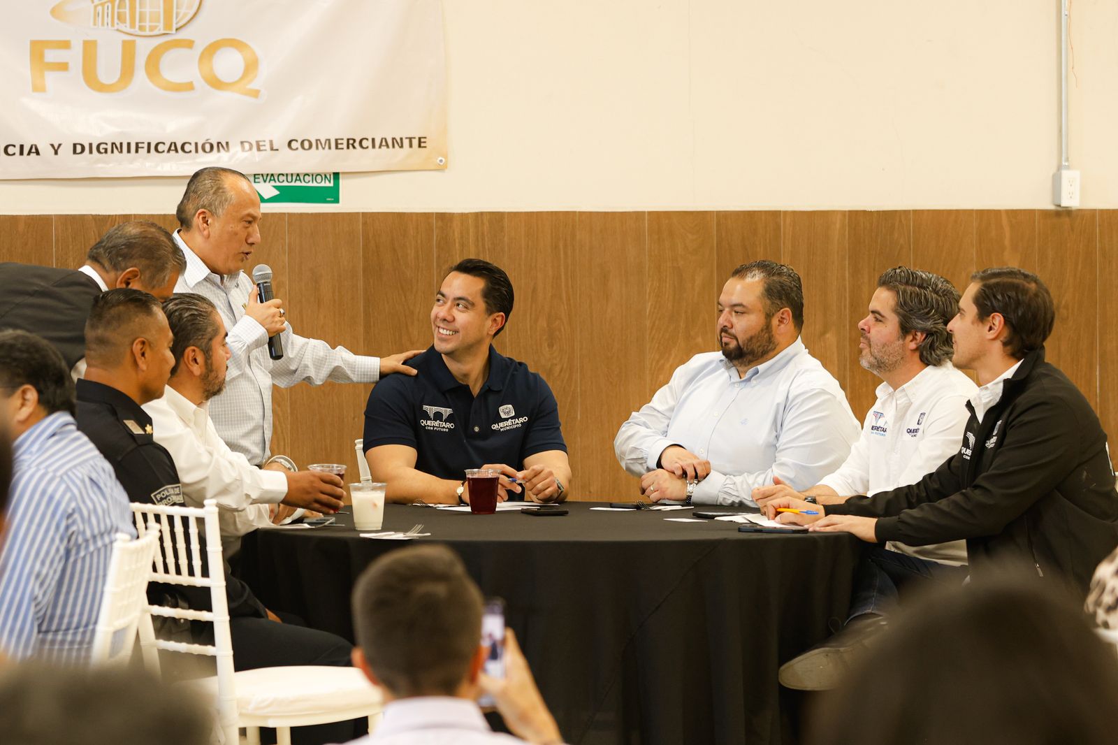 • El presidente municipal de Querétaro, Felifer Macías, se reunió con los líderes de mercados públicos y privados, así como con los de los tianguis adheridos a la Federación de Uniones de Comerciantes Queretanos en Pequeño (FUCQ) con el objetivo de fortalecer el contacto directo con las y los comerciantes de la capital y destacó que su gobierno se caracteriza por ser cercano y sensible a las necesidades de la ciudadanía.