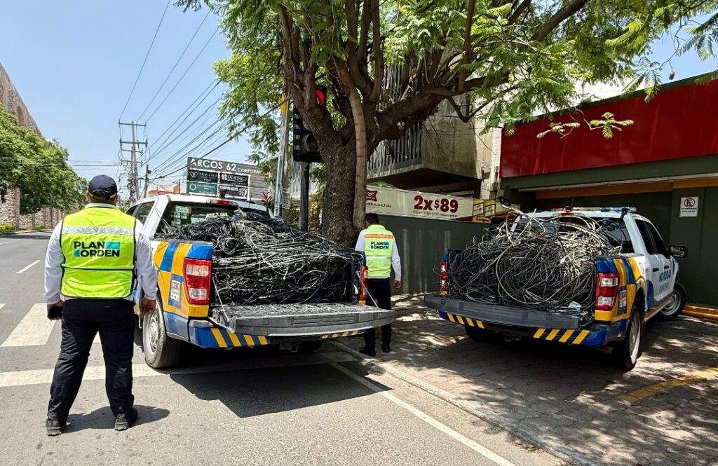 En el operativo más reciente, se retiraron 1.1 toneladas de cableado inutilizable. Esto sobre Av. de la Luz, en el tramo comprendido desde Prol. Bernardo Quintana hasta Av. de las Fuentes.