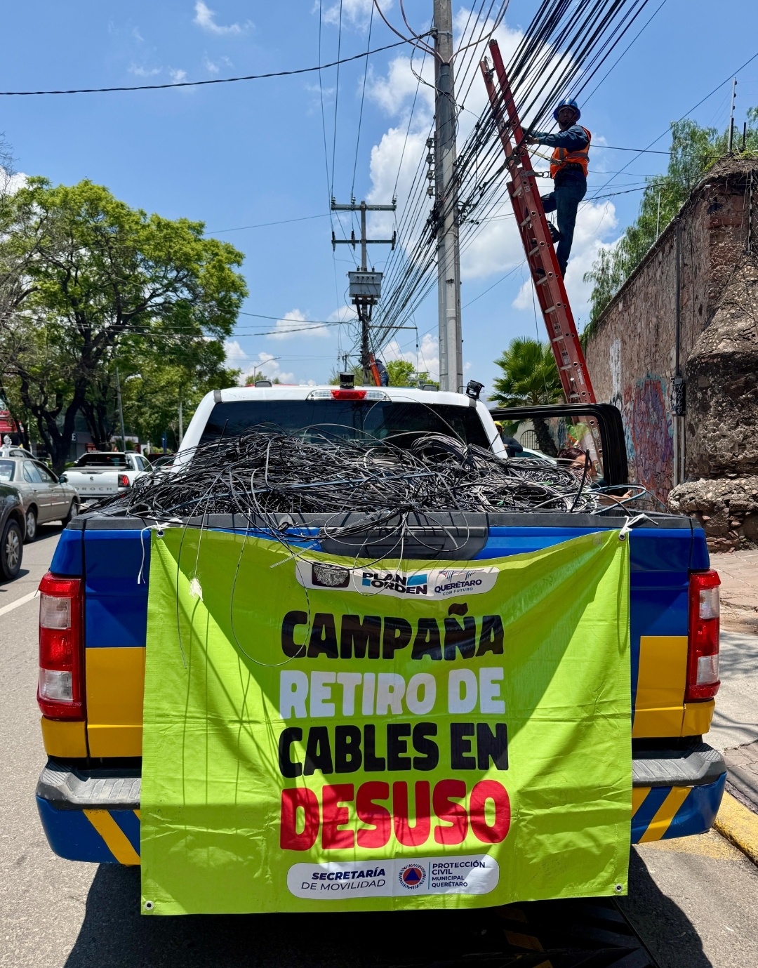 Por indicación del alcalde Felifer Macías, el Municipio de Querétaro, en colaboración con 14 empresas de telecomunicaciones, logró retirar 25.1 toneladas, equivalentes a 240 mil metros lineales, de cableado en desuso de las principales calles de la ciudad.