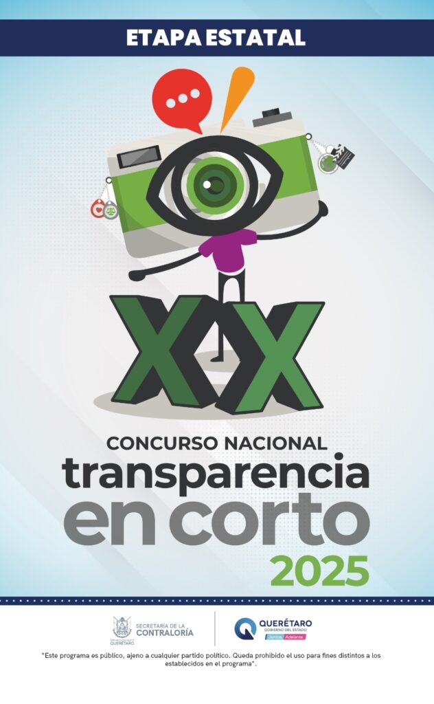 La Comisión Permanente de Contralores Estados Federación y la Secretaría de la Contraloría del Poder Ejecutivo del Estado de Querétaro, invitan a los jóvenes al Concurso de Transparencia en Corto 2025. El propósito es que, a través de un video, las juventudes exploren, denuncien o propaguen soluciones ante el fenómeno de la desinformación.