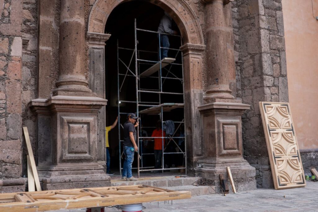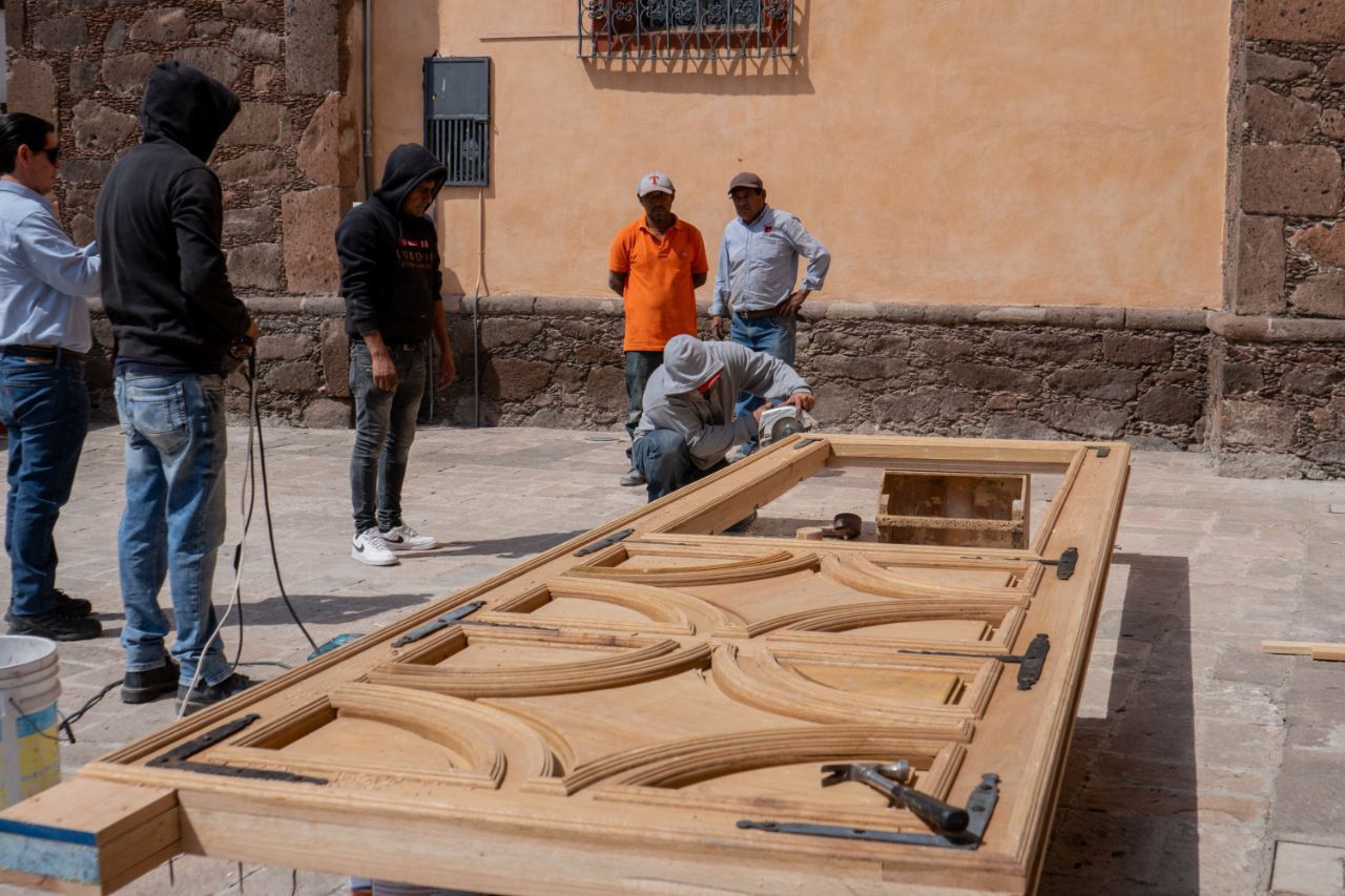 Resaltó que para este proceso de restauración se contó con la aprobación del Instituto Nacional de Historia y Antropología para determinar el tipo de material que se utilizaría; el cual fue encino. Asimismo, dijo que una vez colocada la hoja nueva, el portón recibirá los acabados correspondientes.