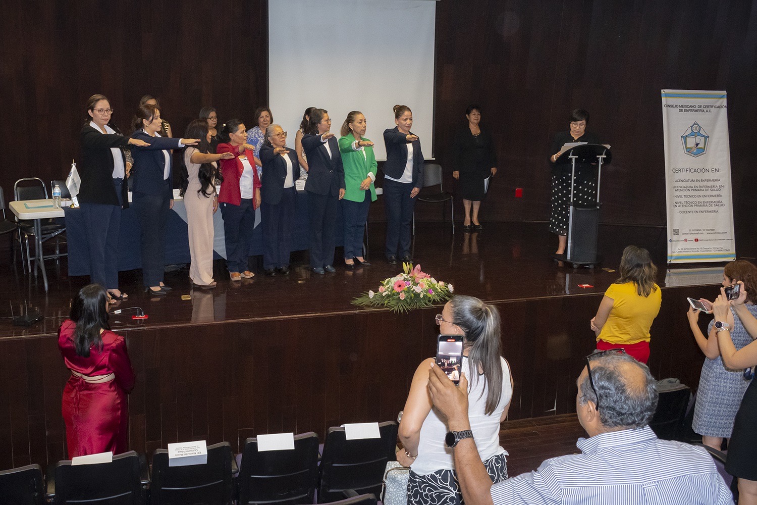 La titular de la Secretaría de Salud (SESA) del estado, María Martina Pérez Rendón, encabezó la toma de protesta al Comité de Enfermeras Profesionistas de Querétaro A.C. 2024-2026, la cual dirige María Teodora Olvera Trejo.