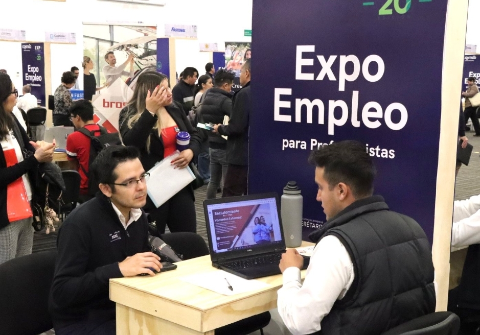 La Secretaría del Trabajo (ST) y 50 empresas de los sectores industrial y de servicios, ofertaron 850 plazas vacantes en la Expo Empleo para Profesionistas, espacio de vinculación laboral dirigido de manera especial a personas con formación técnica superior universitaria y licenciatura, esto dentro de la Expo Encuentro Industrial y Comercial Querétaro 2024.