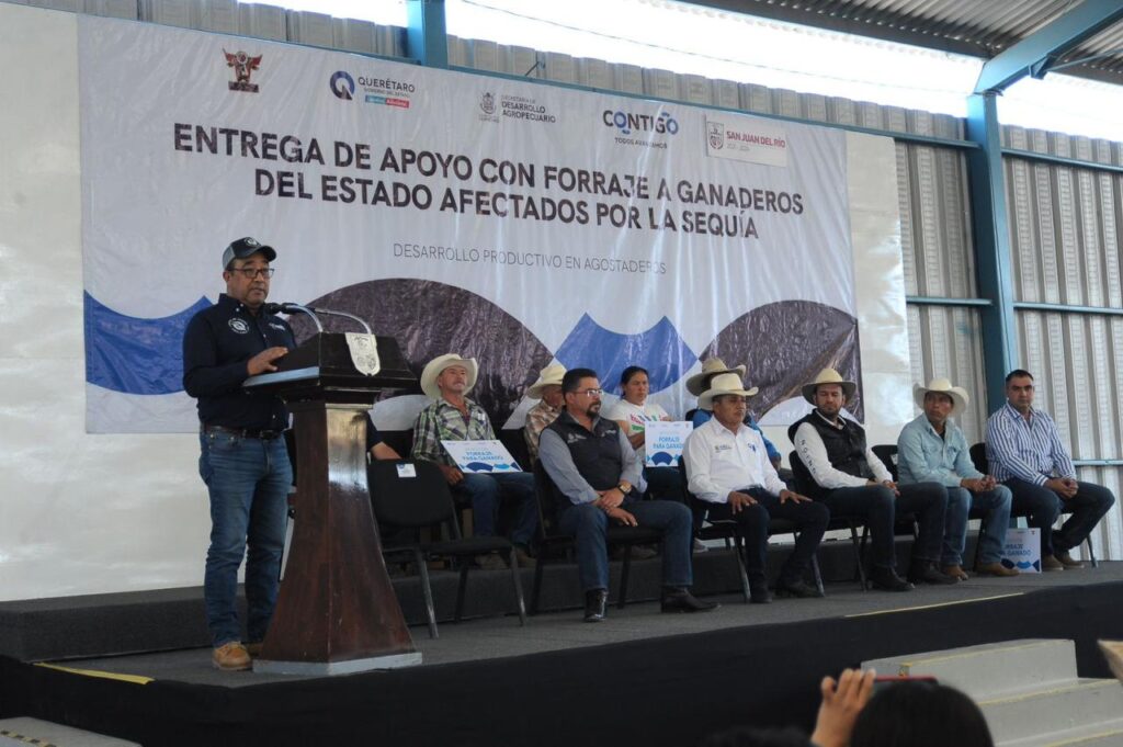 En beneficio de 242 productores pecuarios del municipio de San Juan del Río y con una inversión cercana a un millón de pesos, fueron entregadas 242 toneladas de forraje, como parte del Programa Emergente de Apoyo por Sequía, implementado por el Gobierno del Estado de Querétaro, a través de la Secretaría de Desarrollo Agropecuario (SEDEA), en equipo con el Gobierno Municipal sanjuanense.