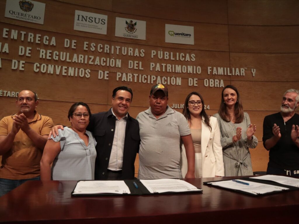 Añadió que con este tipo de acciones se da un paso significativo hacia la regularización de propiedades en nuestro estado porque la entrega de estas escrituras y títulos de propiedad no solamente brinda certeza jurídica a los beneficiarios, sino que también fortalece el tejido social y promueve un desarrollo urbano ordenado y sostenible en Querétaro.
