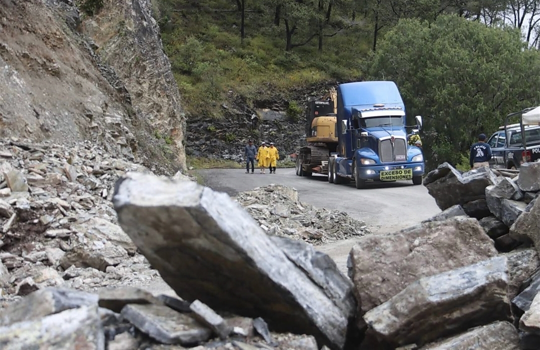 Hoy llegó la máquina que realizará los trabajos más fuertes para dejar su camino en óptimas condiciones. Personal de la Administración Municipal sigue trabajando sin descanso