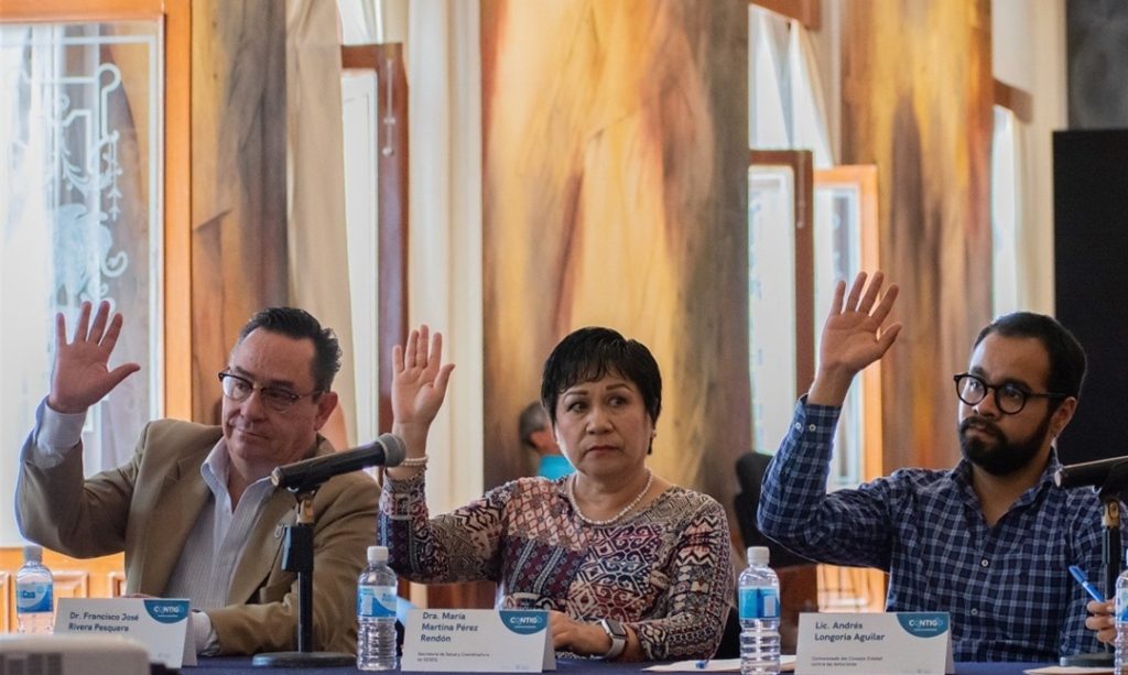 Participaron en la sesión el subcoordinador General Médico de Servicios de Salud del Estado de Querétaro (SESEQ), Francisco José Rivera Pesquera; la secretaria Técnica del CECA, María Fernanda Sánchez Pliego Meléndez; y representantes del Sistema Estatal para el Desarrollo Integral de la Familia del Estado de Querétaro, Secretaría de Educación, Secretaría de Turismo, Secretaría de la Juventud y Secretaría de Gobierno, entre otras personalidades.