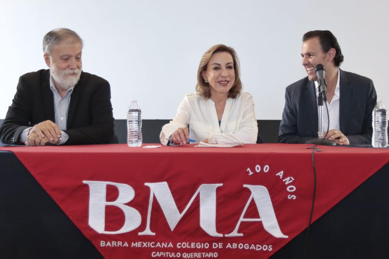 Ante la Barra Mexicana de Abogados Capítulo Querétaro, la candidata del PAN al Senado de la República, Lupita Murguía, pidió el voto para Xóchitl Gálvez, los candidatos de Acción Nacional y cuidar los equilibrios en el próximo Congreso Federal.