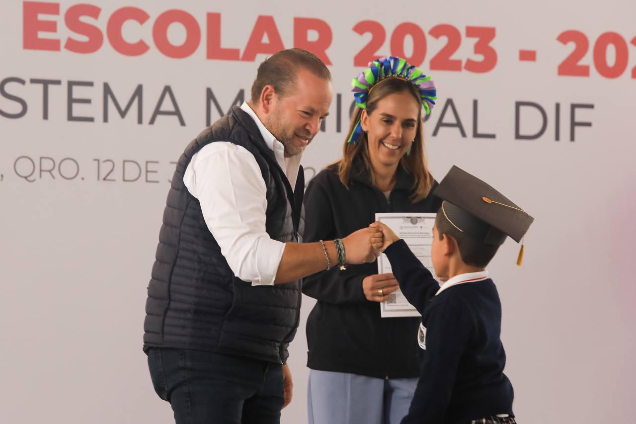 El Municipio de Querétaro dio por clausurado el ciclo escolar 2023-2024 de los 10 centros preescolares que pertenecen al Sistema Municipal DIF; con un festival en las instalaciones del parque Bicentenario 438 niñas y niños festejaron la culminación de su formación educativa inicial y recibieron su constancia que certifica su curso preescolar.