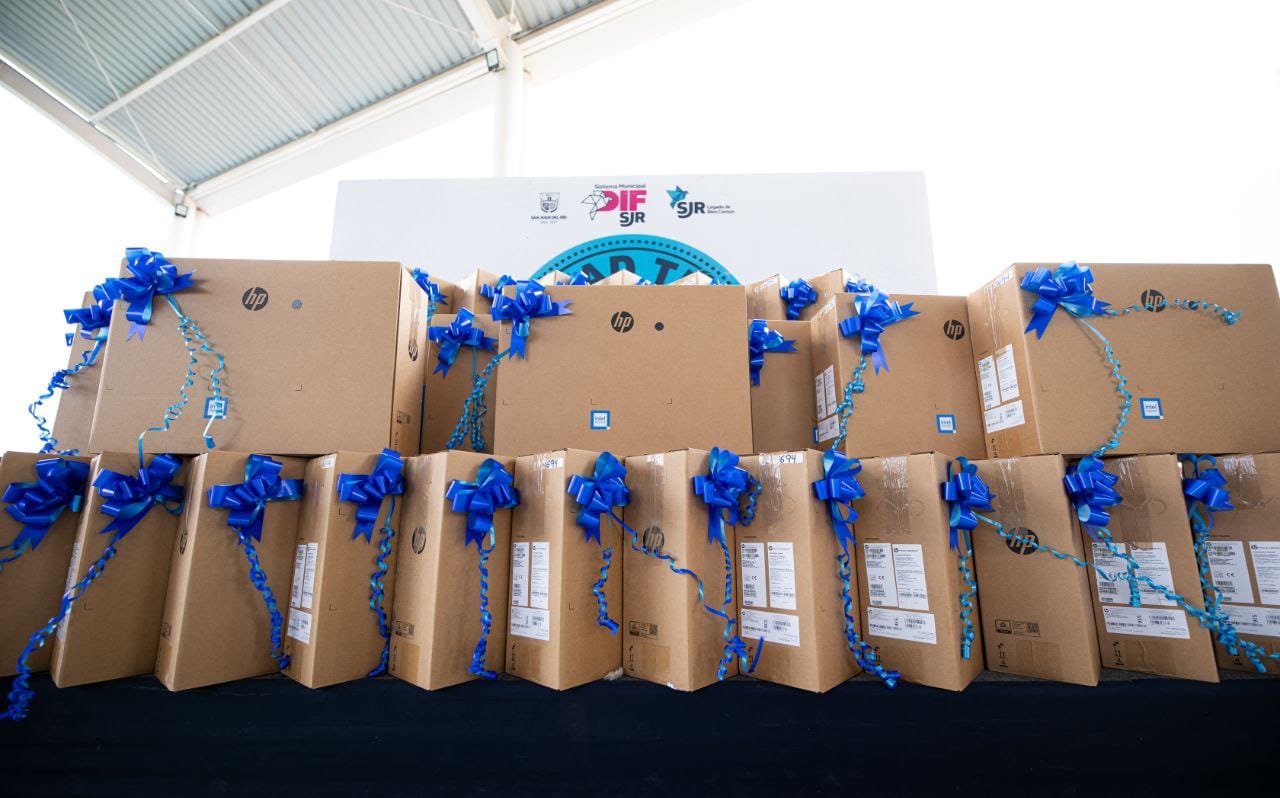 Con la finalidad de fortalecer la educación y el aprendizaje de las y los estudiantes de la telesecundaria Francisco Villa, ubicada en la comunidad El Sitio, la presidenta del Sistema Municipal para el Desarrollo Integral de la Familia (DIF) de San Juan del Río, Gina Sánchez Barrios, y el alcalde sanjuanense, Roberto Cabrera Valencia, entregaron 30 equipos de cómputo de escritorio a la comunidad escolar, como parte del Programa “Mitad Tú, Mitad Yo”.