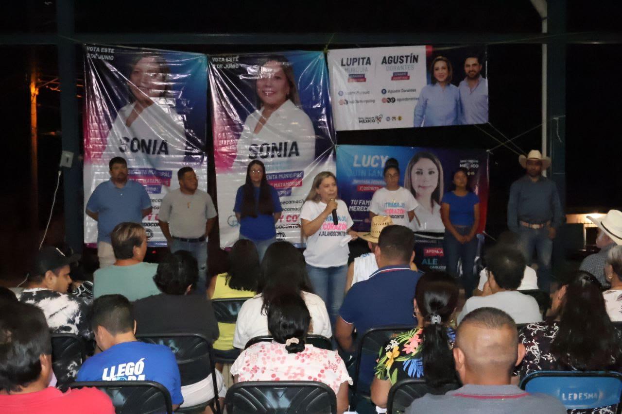 En el Barrio San Esteban de la cabecera municipal Sonia Ponce presentó su proyecto de trabajo enfocado a diferentes ejes de desarrollo, pero también recibió un documento elaborado por la comunidad donde se comprometió a dar continuidad a los proyectos de infraestructura y a proponer soluciones a las principales inquietudes ciudadanas.