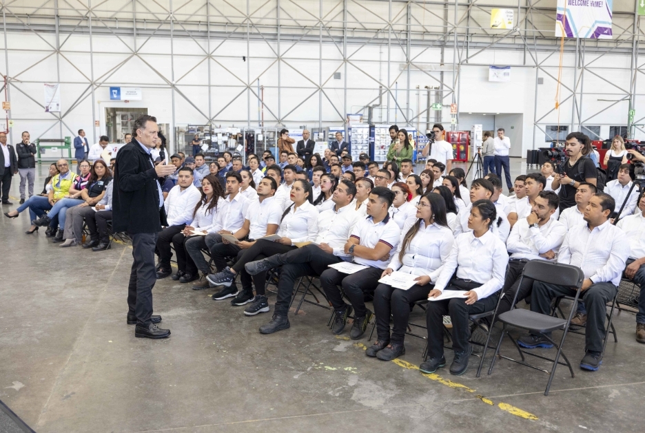 Desde las instalaciones de la empresa de mantenimiento, reparación y revisión de aeronaves (MRO) de cabina ancha, cabina angosta y jets regionales, el mandatario estatal felicitó al personal y a los directivos por sumarse a esta iniciativa, desarrollada como parte de un modelo exitoso donde el Gobierno del Estado aporta el recurso público para el proceso, la empresa capacita y se garantiza que quienes están en formación cuenten con un empleo.