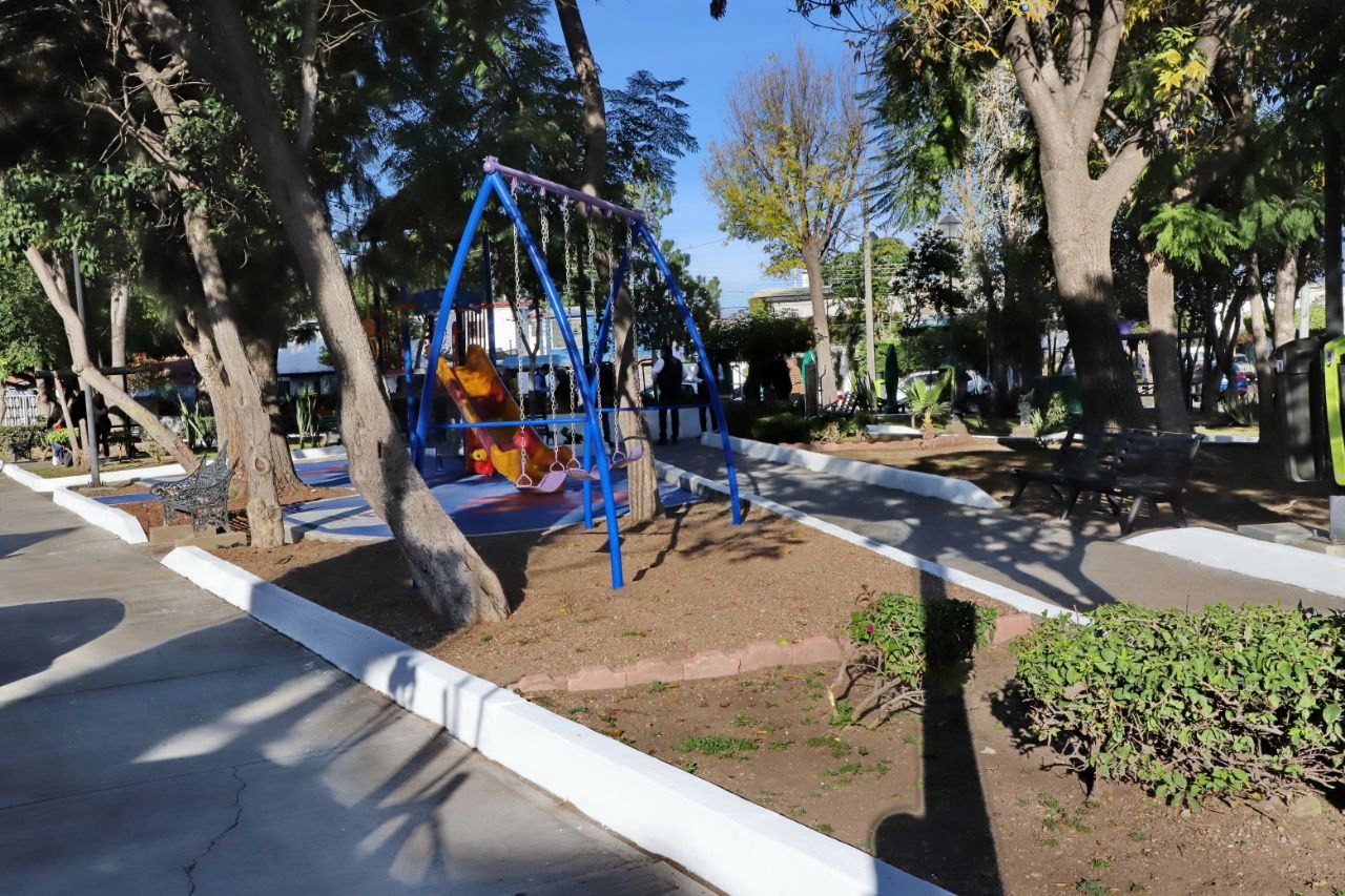 En Las Plazas, se realizaron trabajos de pintura en topes, bacheo de empedrado y adocreto, así como el pintado de jardineras y guarniciones. Además, se realizaron actividades de poda baja, desmalezado, barrido, y la rehabilitación de pasos peatonales con colado en concreto, junto con el pintado de juegos para las niñas y niños de la zona.
