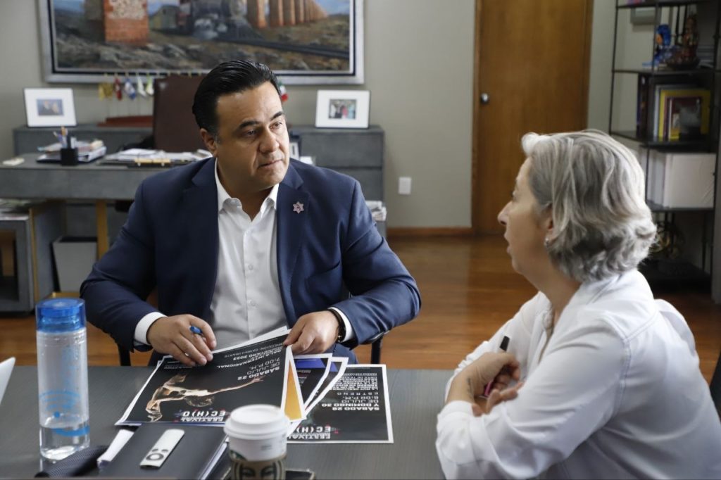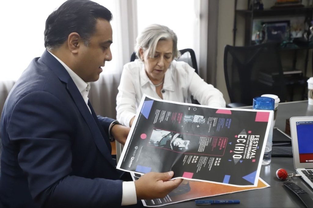 El Presidente Municipal de Querétaro, Luis Nava, se reunió con la Secretaria de Cultura, María Teresa García Besné, para revisar los últimos detalles de la planeación de los eventos culturales con motivo del Festival por el “492 Aniversario Santiago de Querétaro EC(H)O”.
