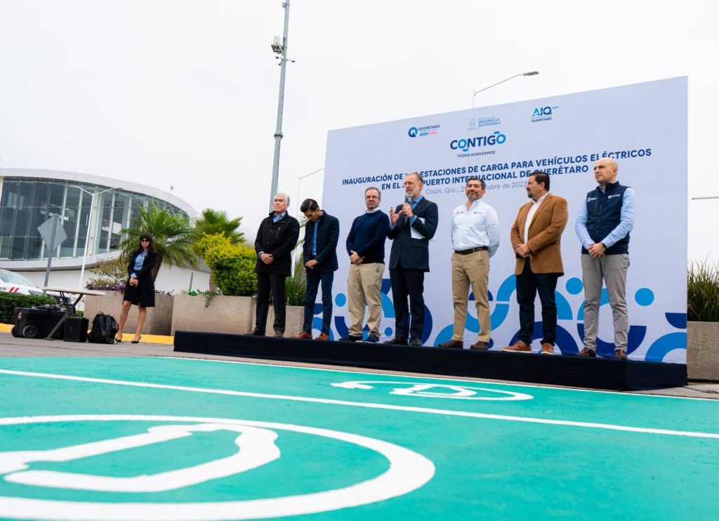 Con el objetivo de poner en marcha acciones de mitigación y reducción de emisiones de Gases de Efecto Invernadero (GEI), a partir de la electromovilidad, el titular de la Secretaría de Desarrollo Sustentable (SEDESU), Marco Antonio Del Prete Tercero, inauguró las estaciones de carga para vehículos eléctricos en las instalaciones del Aeropuerto Internacional de Querétaro (AIQ).