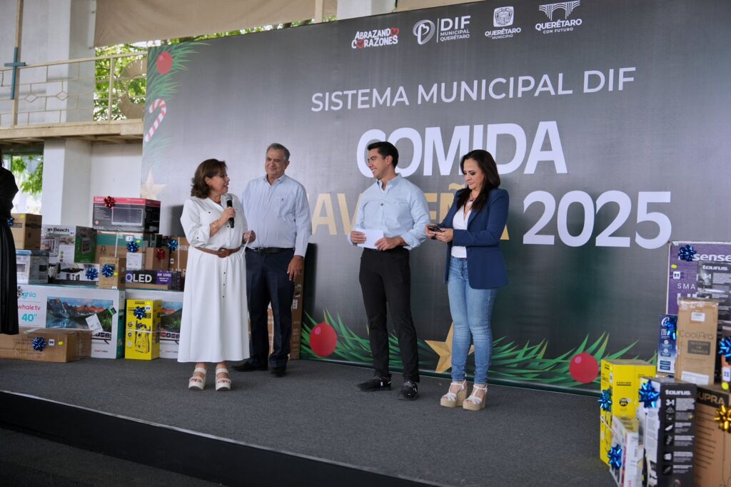 El presidente municipal de Querétaro, Felifer Macías, acompañó a la presidenta del Patronato del Sistema Municipal DIF, Adriana Olvera de Macías, a la tradicional comida navideña del organismo, donde reconoció la labor que desempeñan todas y todos sus trabajadores en el apoyo a personas en situación de vulnerabilidad y destacó que su esfuerzo refleja el espíritu de orden y servicio que impulsa a la administración municipal para construir el mejor Querétaro de la historia con instituciones que fortalecen a las familias y brindan un acompañamiento digno a quienes más lo requieren.