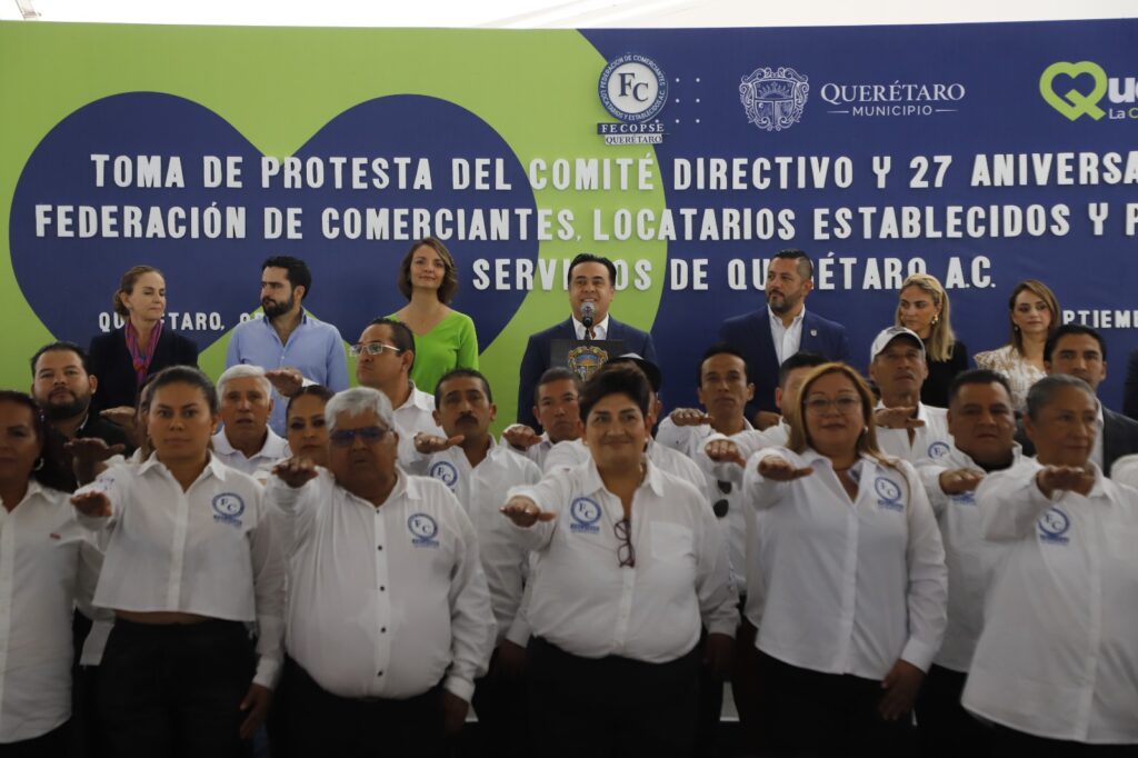 En el Marco del 27 Aniversario de la Federación de Comerciantes, Locatarios Establecidos y Prestadores de Servicios de Querétaro A.C. (FECOPSE), el Presidente Municipal de Querétaro, Luis Nava, tomó la Protesta a los integrantes del Comité Directivo para el periodo 2024-2027, a quienes llamó a mantener su compromiso para el fortalecimiento de su gremio como parte de la economía local, y para la mejora de la calidad de vida de todas las familias.