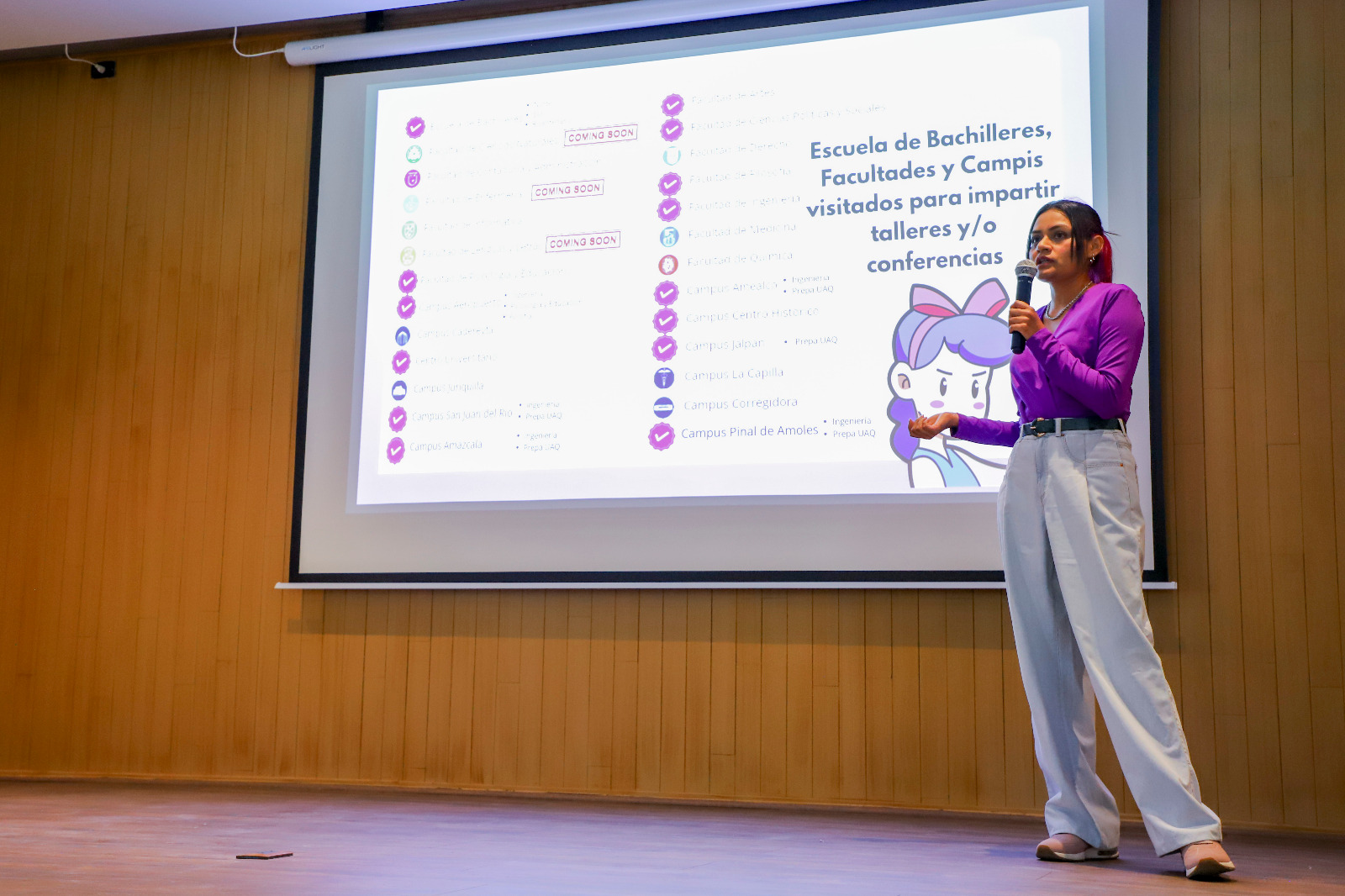 En el marco de las actividades organizadas por la Unidad de Género y Espacios de Cuidados, de la Facultad de Ingeniería (FI) de la Universidad Autónoma de Querétaro (UAQ), por el Día Internacional de la Mujer, estudiantes egresadas de posgrado de la Facultad de Ingeniería (FI) y actualmente colaboradoras de la Dirección de Atención a la Comunidad Universitaria, junto con el equipo de IngeniaLab-Laboratorio Multimedia de esta Unidad Académica relanzaron la aplicación «Caminamos Juntas».