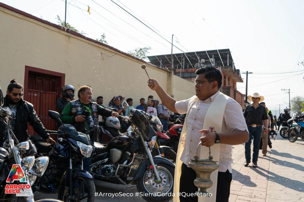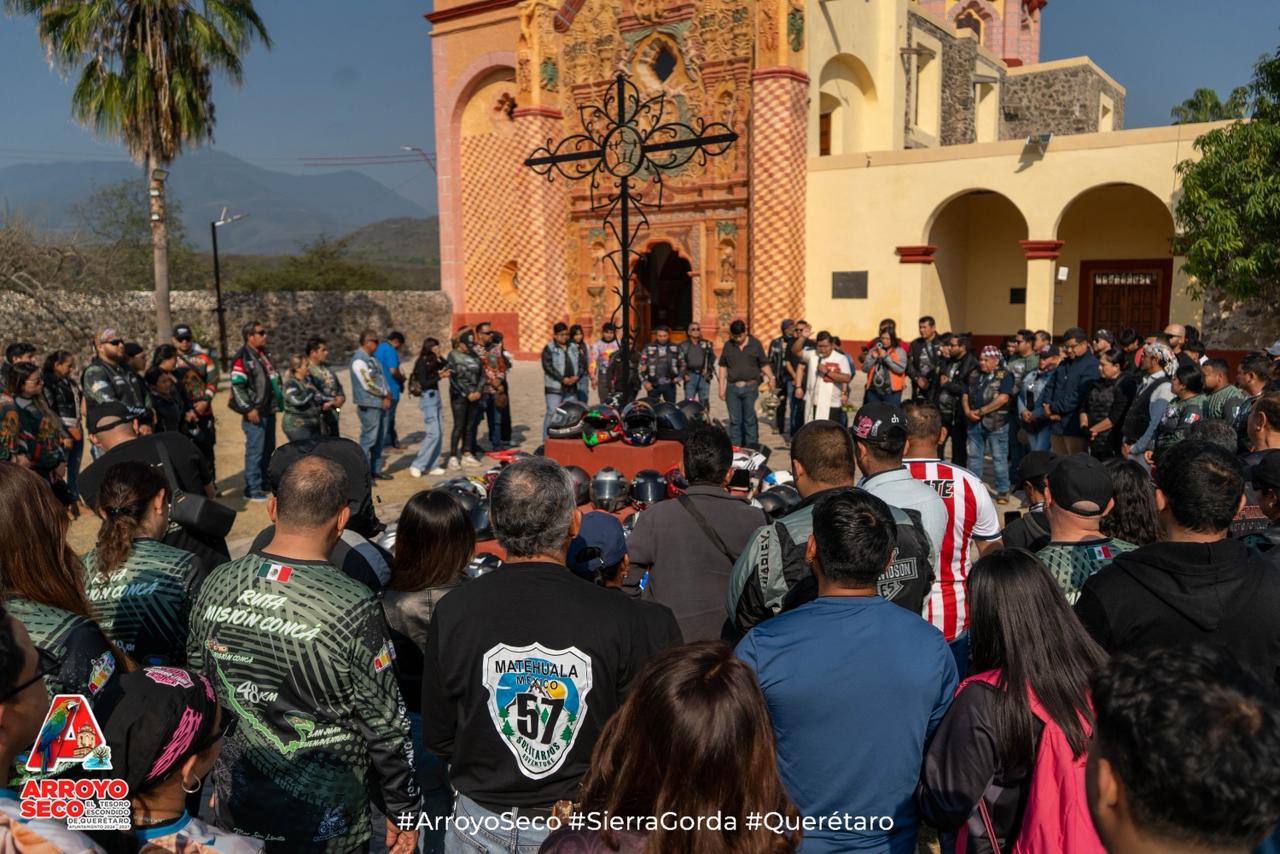 Previo al recorrido, se realizó la bendición de cascos en la Misión Franciscana San Miguel Arcángel de Concá, como parte del programa organizado por el Gobierno Municipal a través de la Coordinación de Turismo, en colaboración con ADETAS y el club La Ruta del Peyote, quienes sumaron esfuerzos para el desarrollo de esta rodada.