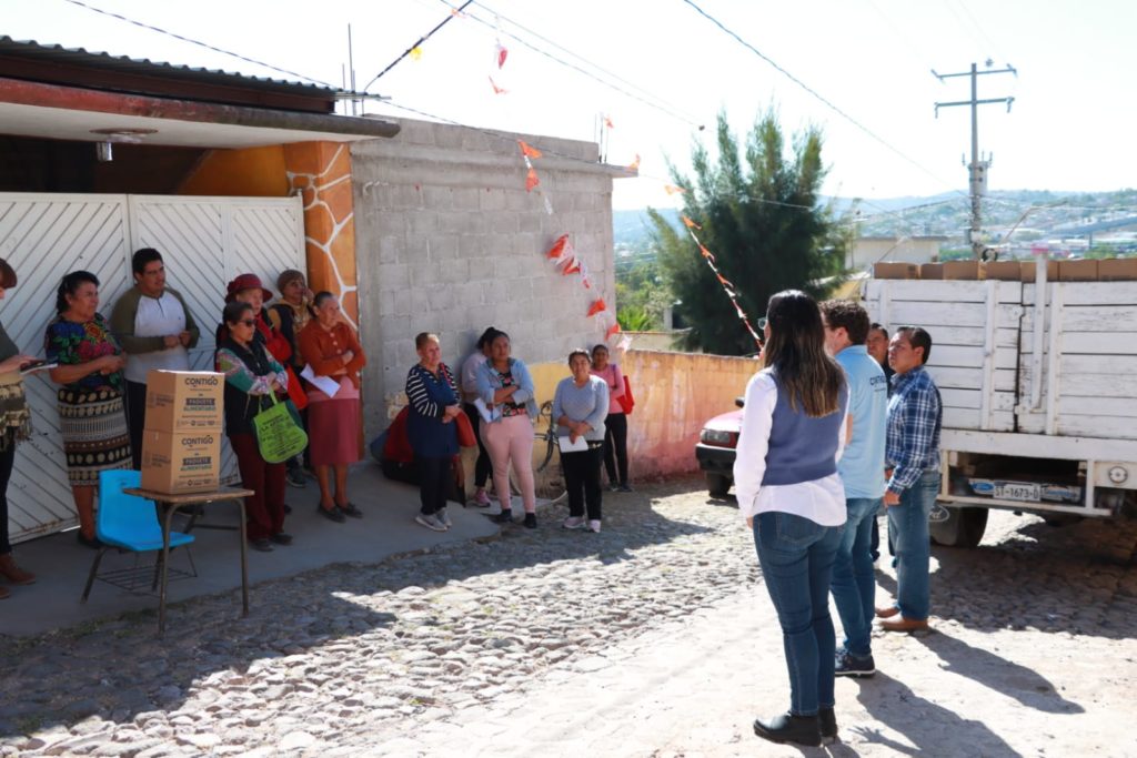En esta gira de entrega de apoyos Diego Martínez, Coordinador Regional de la Zona del Semidesierto por parte de la Secretaría de Desarrollo Social de Querétaro (SEDESOQ), destacó que gracias a la gestión realizada por el presidente municipal Miguel Martínez Peñaloza con el Jefe del Ejecutivo, Mauricio Kuri, es que se está realizando esta entrega de apoyos alimentarios de forma bimestral.