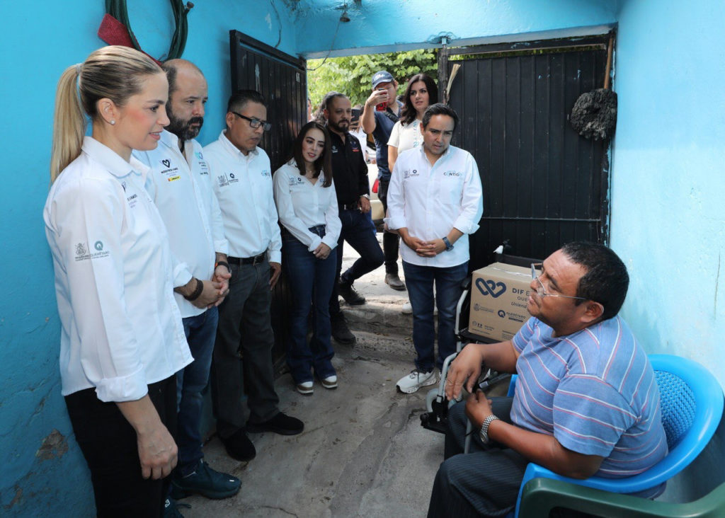 Con el objetivo de mejorar la calidad de vida de las personas que menos tienen, la presidenta del Patronato del Sistema Estatal DIF, Car Herrera de Kuri, unió esfuerzos con el secretario de Planeación y Participación Ciudadana, Antonio Rangel Méndez y con la coordinadora Estatal del Programa Juntos Contigo, Laura Dorantes Castillo, para brindar apoyo a familias de la colonia Felipe Carrillo Puerto, consistentes en despensas y sillas de ruedas.