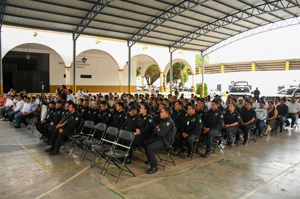 El compromiso del Gobierno Municipal con el cuerpo policiaco es innegable. En el 2022 se logró la homologación de 27 policías y en el transcurso de 2023 se efectuó un incremento de 1000 pesos en sus salarios, además, se entregó equipo táctico al grupo de reacción y se creó la Unidad de Atención a Víctimas, con un vehículo anónimo y exclusivo, coordinado con 6 elementos dedicados a la prevención, protección y canalización.