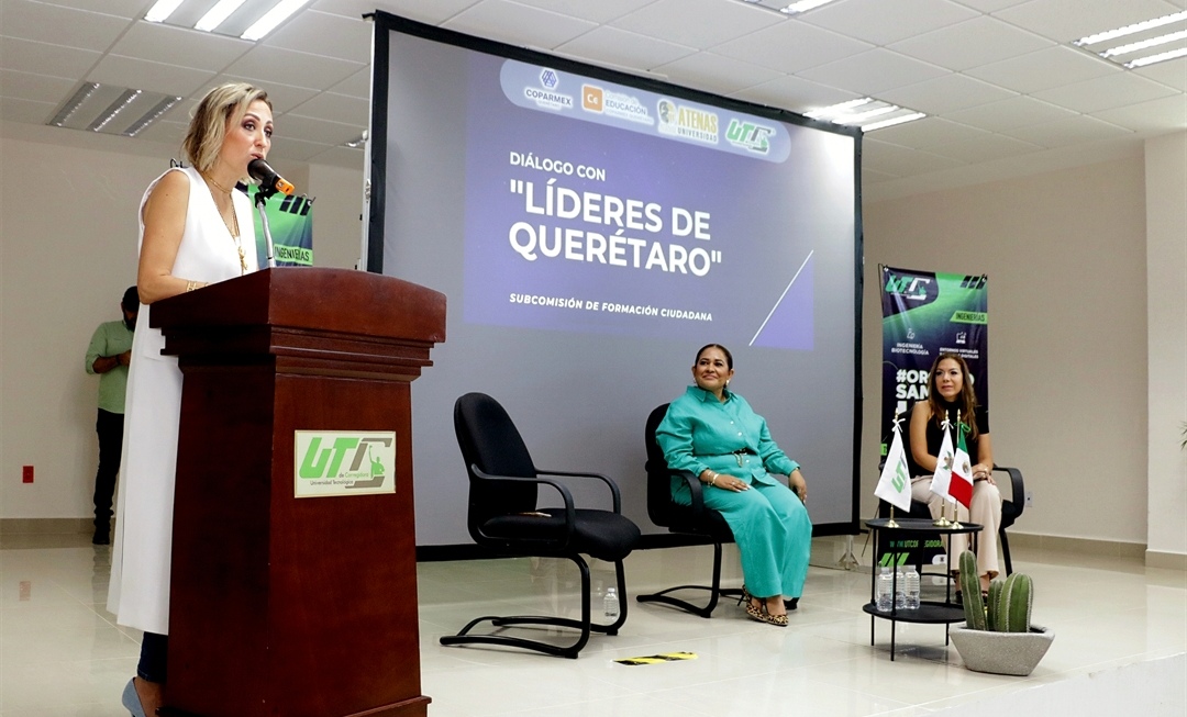 En las instalaciones de la Universidad Tecnológica de Corregidora (UTC), se llevó a cabo el foro Diálogos con Líderes de Querétaro, organizado por la Subcomisión de Formación Ciudadana de Comisión de Educación (COEDUQ) de la Confederación Patronal de la República Mexicana (COPARMEX Querétaro), que tuvo como invitada especial, a la presidenta municipal de Tolimán, Lupita Alcántara de Santiago, quién habló sobre su trayectoria profesional a las y los estudiantes de esta casa de estudios.