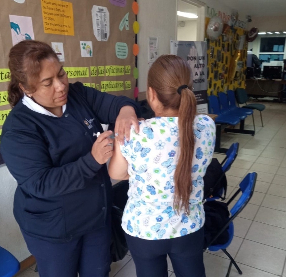 La Secretaría de Salud (SESA) del estado de Querétaro informa que con base al actual panorama epidemiológico de sarampión en el país, y ante las recomendaciones y estrategias emitidas con el Consejo Nacional de Vacunación, entre las que se encuentra aplicar una dosis adicional de biológico contra Sarampión/Rubéola (SR) de forma independiente del estado vacunal al personal de salud, se realizó una jornada de vacunación para las y los trabajadores adscritos a las oficinas de la Jurisdicción Sanitaria No. 1.